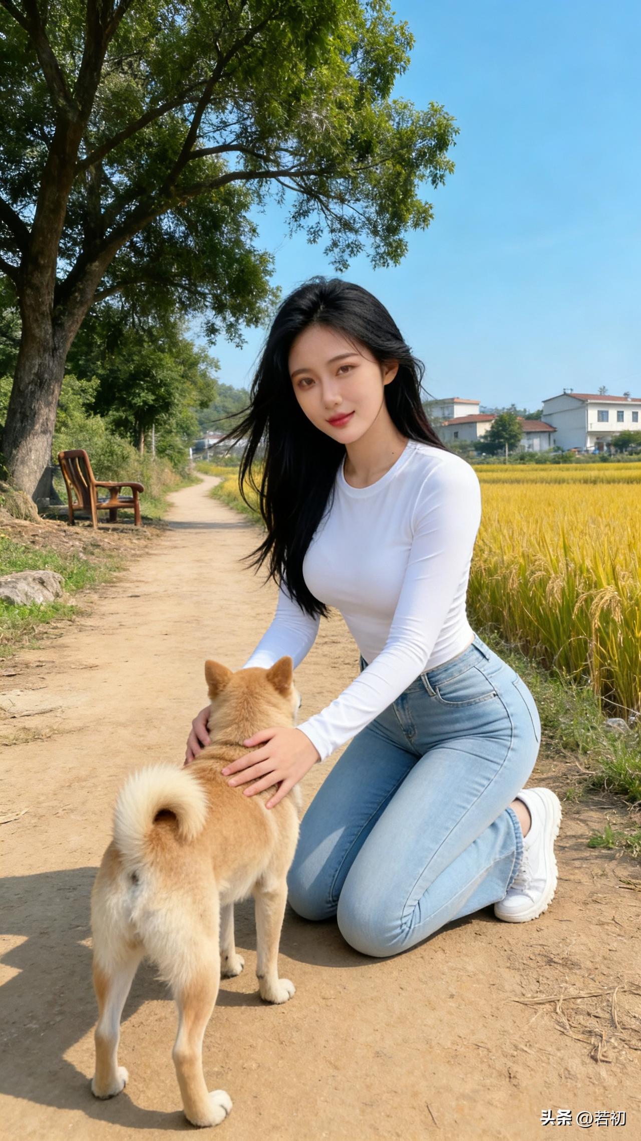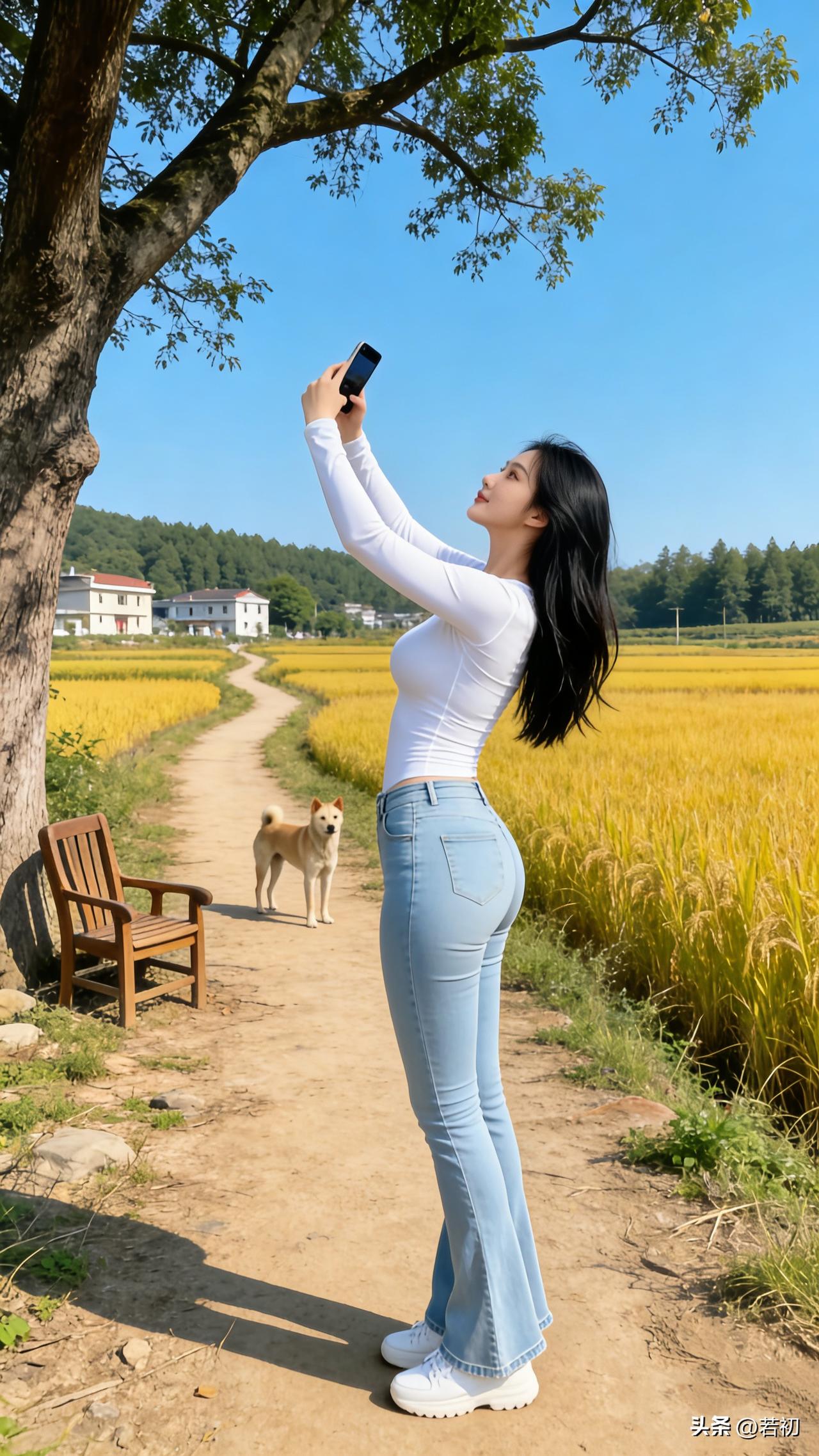 夏日田野漫步,牛仔裤与白T恤的清新搭配,轻松自在。🌾👗👟