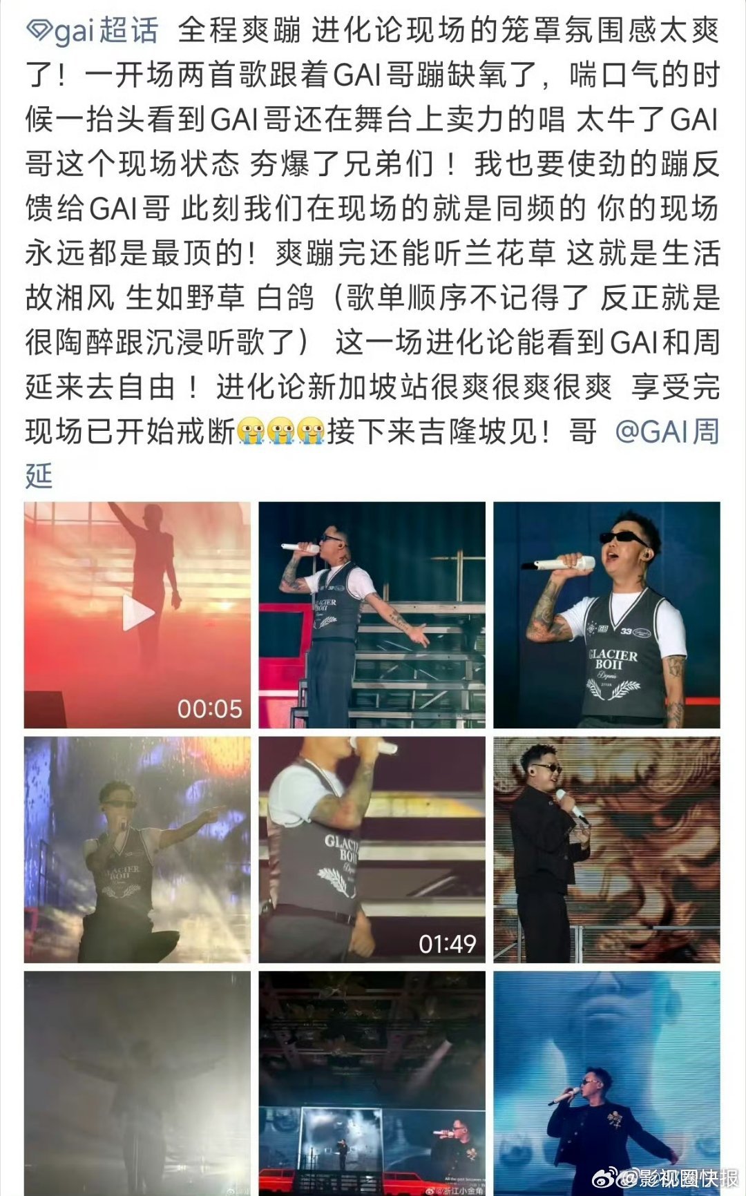 GAI新加坡后遗症看完GAI新加坡,身体疲惫到不行,灵魂却还在蹦迪,刷到片段依旧心跳加速、热血上头。