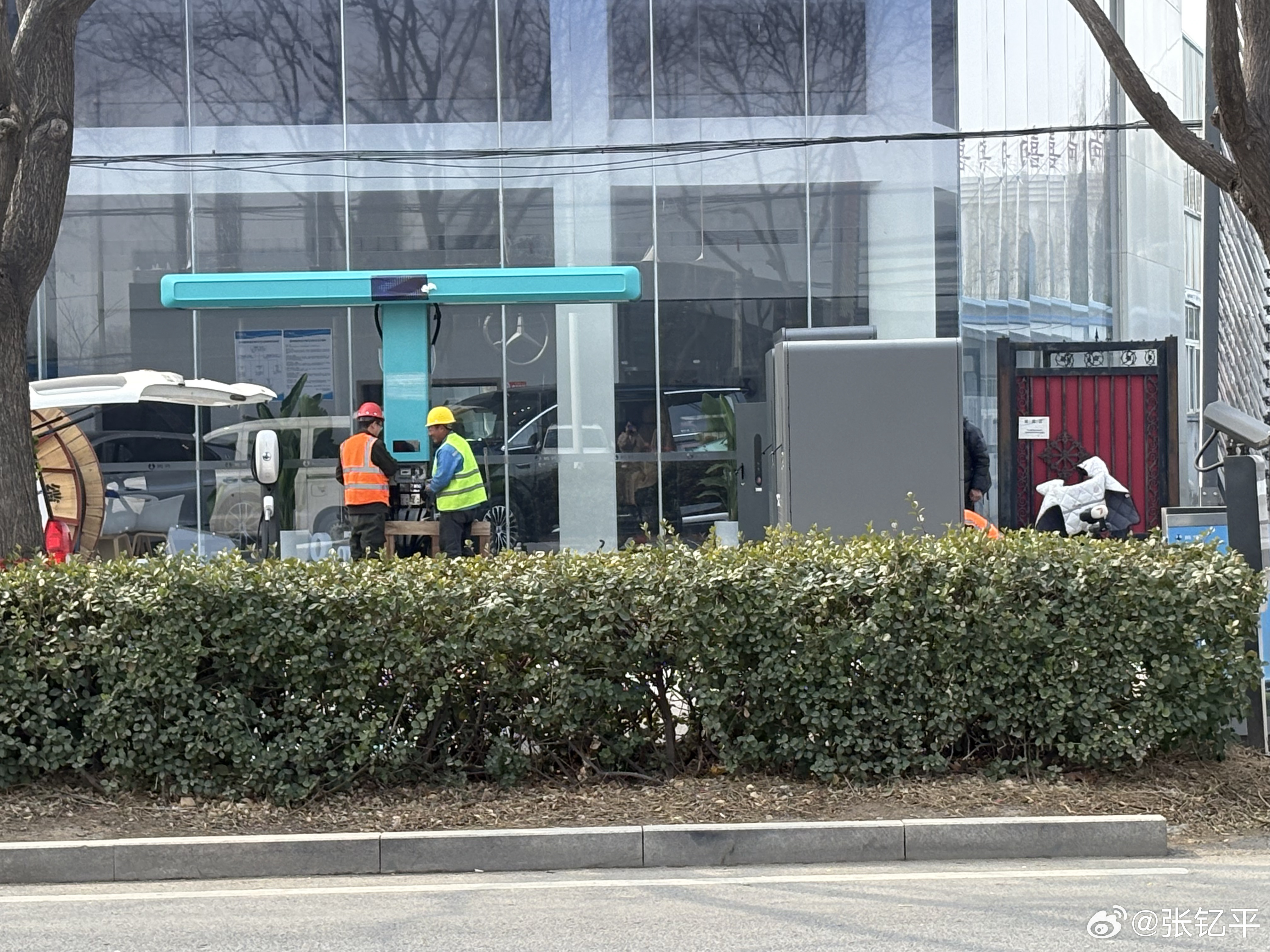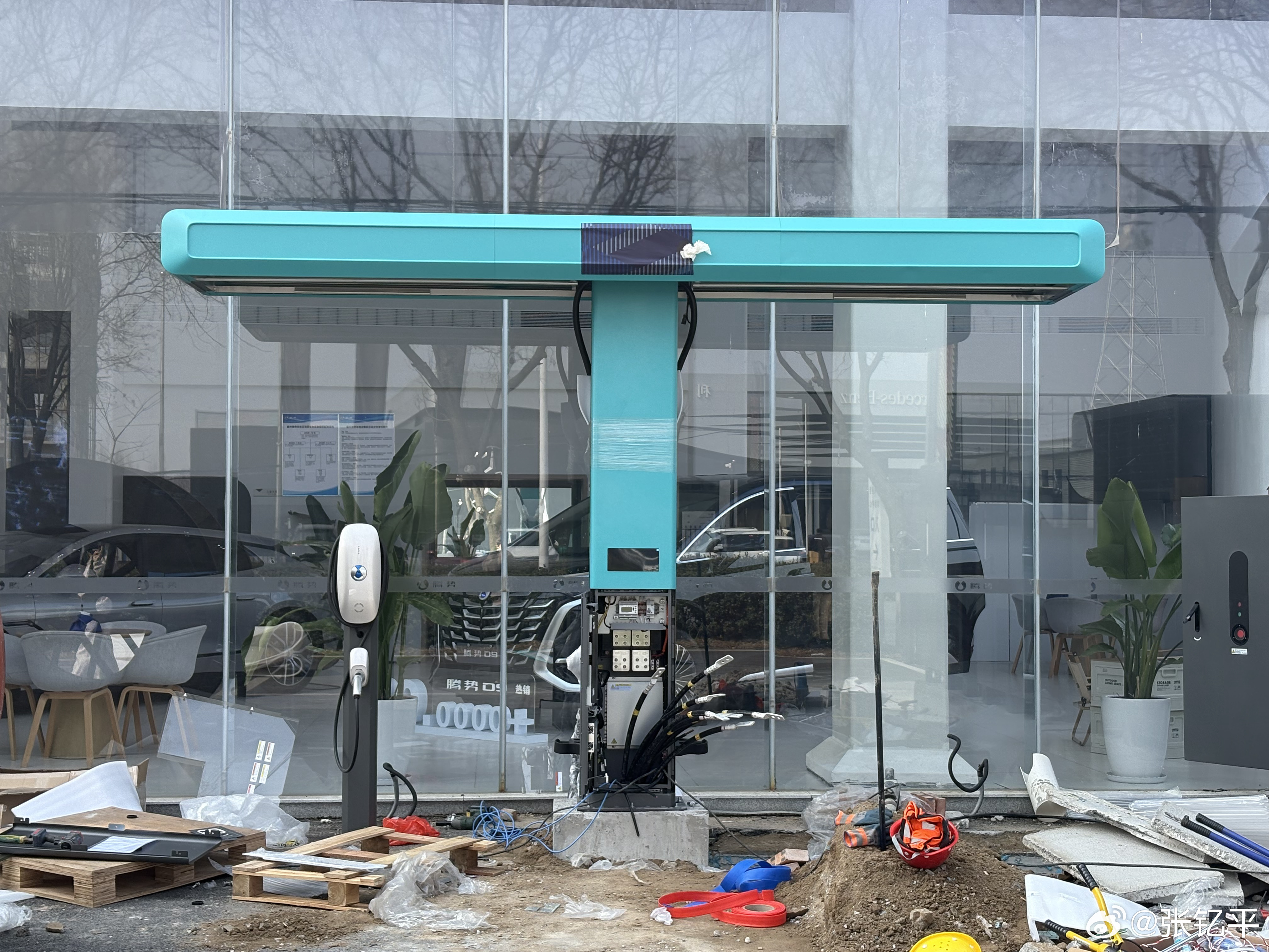 正在施工中的比亚迪闪充,在腾势门店。这应该是发布会开完就立马启动了,效率这一块可以的。新能源汽车大v聊车