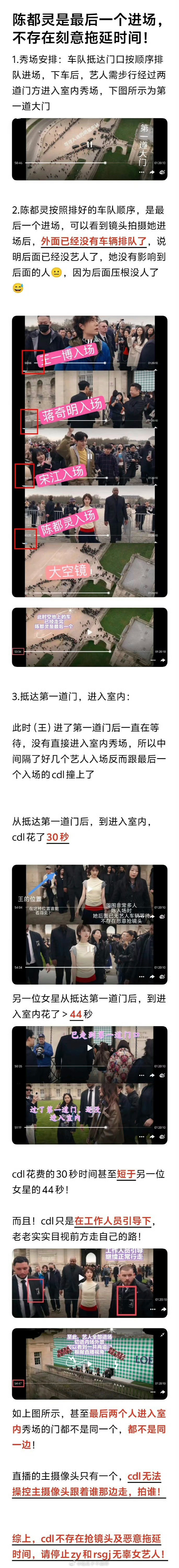 陈都灵家澄清入场,说是最后一个入场,没有刻意拖延时间。