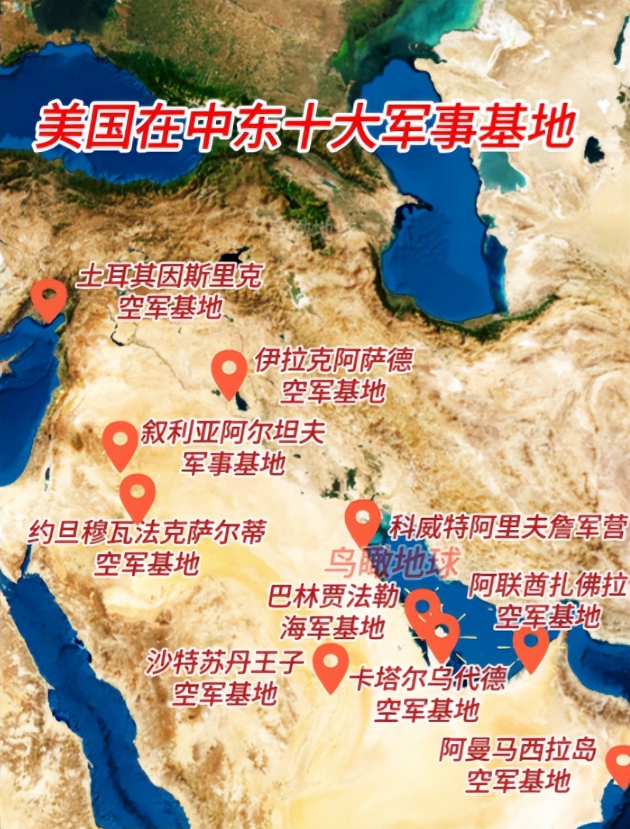 这是美国在中东的十大军事基地,跟北约各国围绕俄罗斯是何其相像。