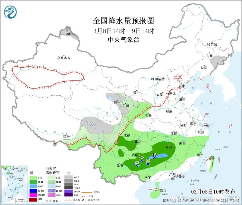 【雨雪】今天08-14时,青海甘肃宁夏部分地区出现降雪,贵州广西湖南部分地区出现降雨。从午后雷达动画看,无论南北方,降水都在东移。今天下午到明天中午,降雨会向东推进到福建浙江。贵州南部和东部,广西北部,湖南西南部可能有中到大雨。