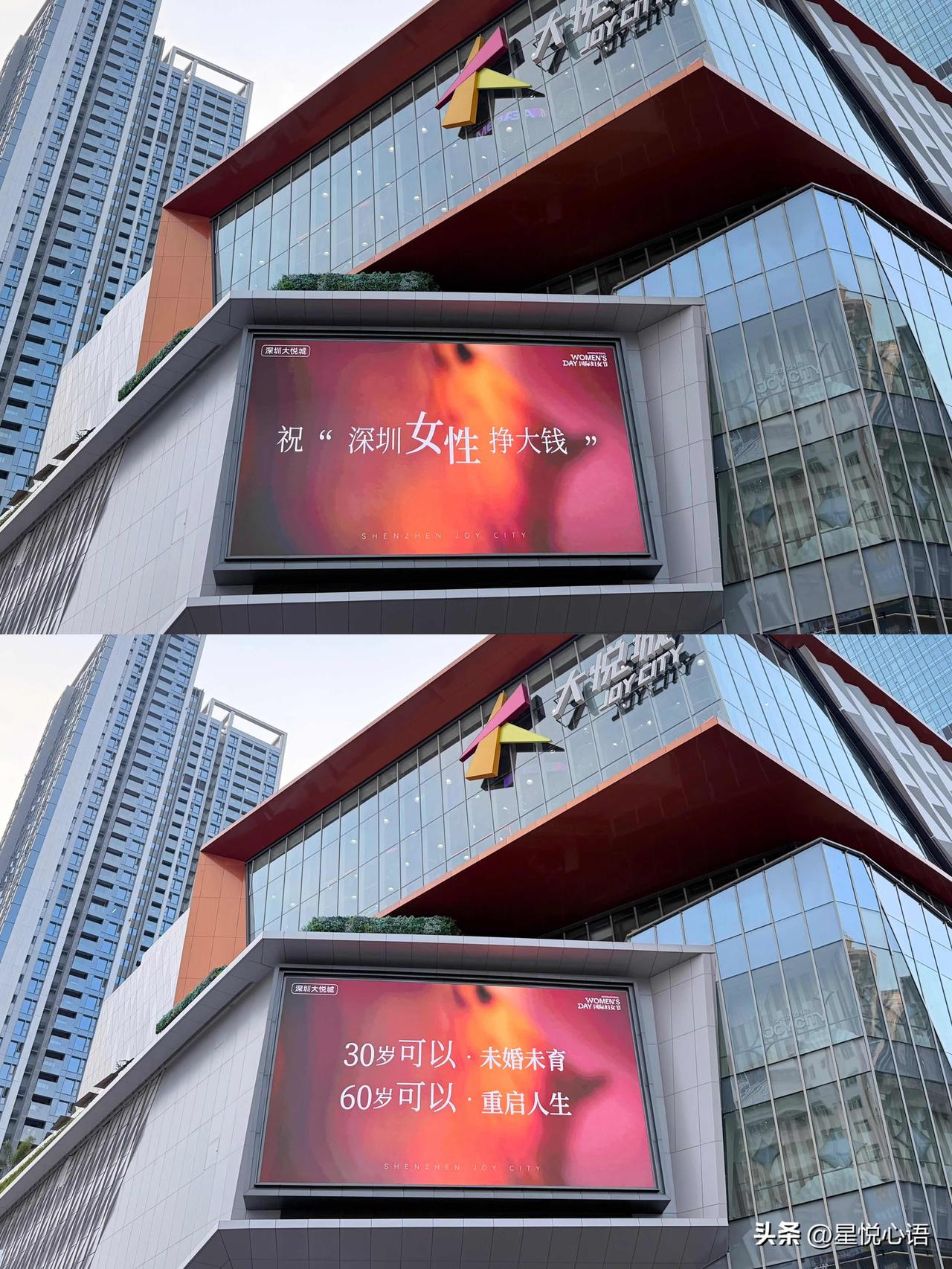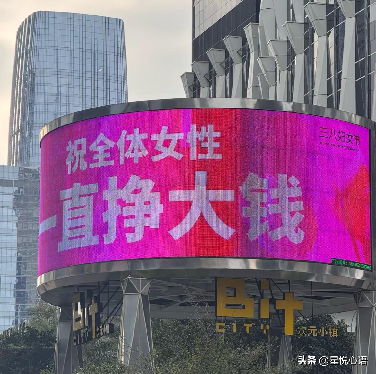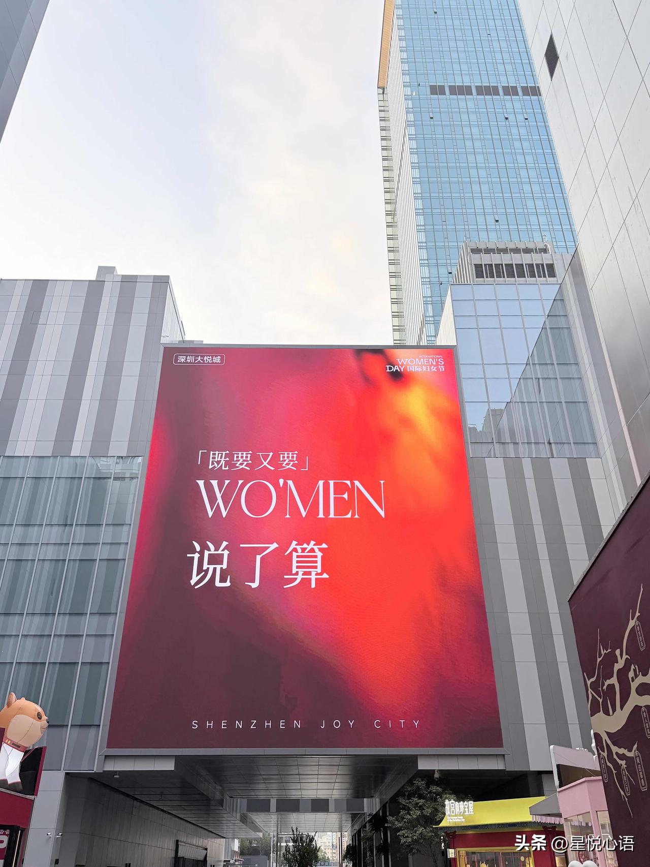 深圳这波三八节大屏真的太懂女人心了 不愧是搞事业的深圳,太先进了 她能拒绝回答,如何平衡工作与家庭。 30岁可以未婚未育,60岁可以重启人生。 女性从不是天生要强,是天生就很强。 WO‘MEN,本来就该自己说了算。 女生的人生从没有标准答案。 不被定义,自在生活。 深圳女孩,只管健健康康,努力挣大钱!