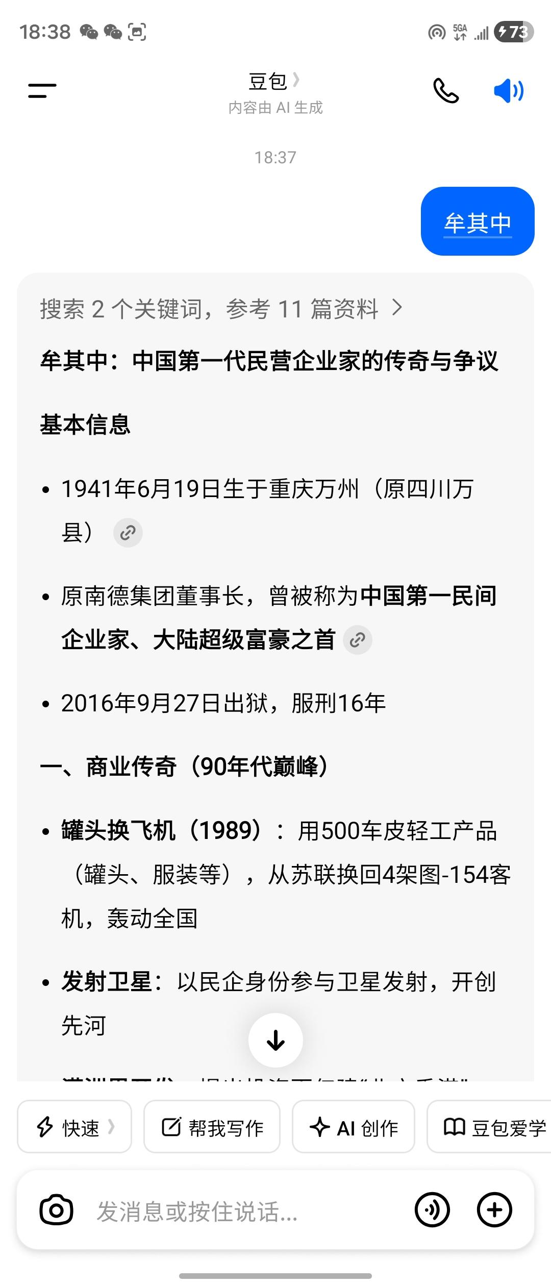 我万分荣幸感激涕零啊受之有愧啊!今天获牟其中牟老英雄今天亲自点赞了我!您是中国民营经济的拓荒先驱,以敢为人先的魄力书写商业传奇,用一生坚守诠释企业家的风骨与担当。 全球商业认知迭代不息,一代人有一代人的使命。您历经风雨仍心怀家国、老骥伏枥志在千里,这份格局与坚韧,是时代最珍贵的精神财富。 向牟老致敬!愿传承您的企业家精神,坚守责任担当,续写商业文明新篇章,不负时代,不负初心。__总统诗人武玉强执笔 牟其中:中国第一代民营企业家的传奇与争议 基本信息 - 1941年6月19日生于重庆万州(原四川万县) - 原南德集团董事长,曾被称为中国第一民间企业家、大陆超级富豪之首 - 2016年9月27日出狱,服刑16年 一、商业传奇(90年代巅峰) - 罐头换飞机(1989):用500车皮轻工产品(罐头、服装等),从苏联换回4架图-154客机,轰动全国 - 发射卫星:以民企身份参与卫星发射,开创先河 - 满洲里开发:提出投资百亿建“北方香港”,打造中俄边贸枢纽 - 财富巅峰:1995年《福布斯》中国内地富豪第4位,南德净资产9.4亿元