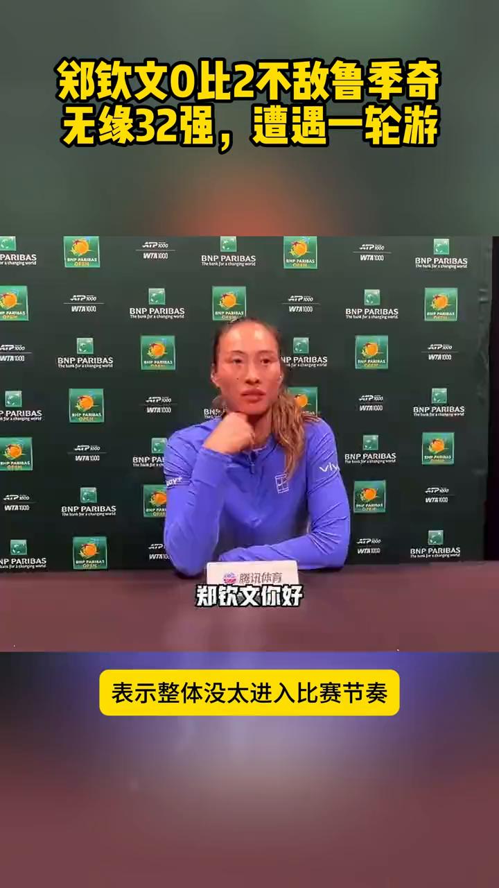 郑钦文0比2不敌鲁季奇,无缘32强,遭遇一轮游。 太可惜了,WTA1000女单印第安维尔斯站第二轮郑琦雯伤愈复出,首战0:2不敌鲁吉奇,无缘32强。赛后郑琦雯坦然复盘,表示整体没太进入比赛节奏,关键分没把握好。希望郑钦文越挫越勇,加油。