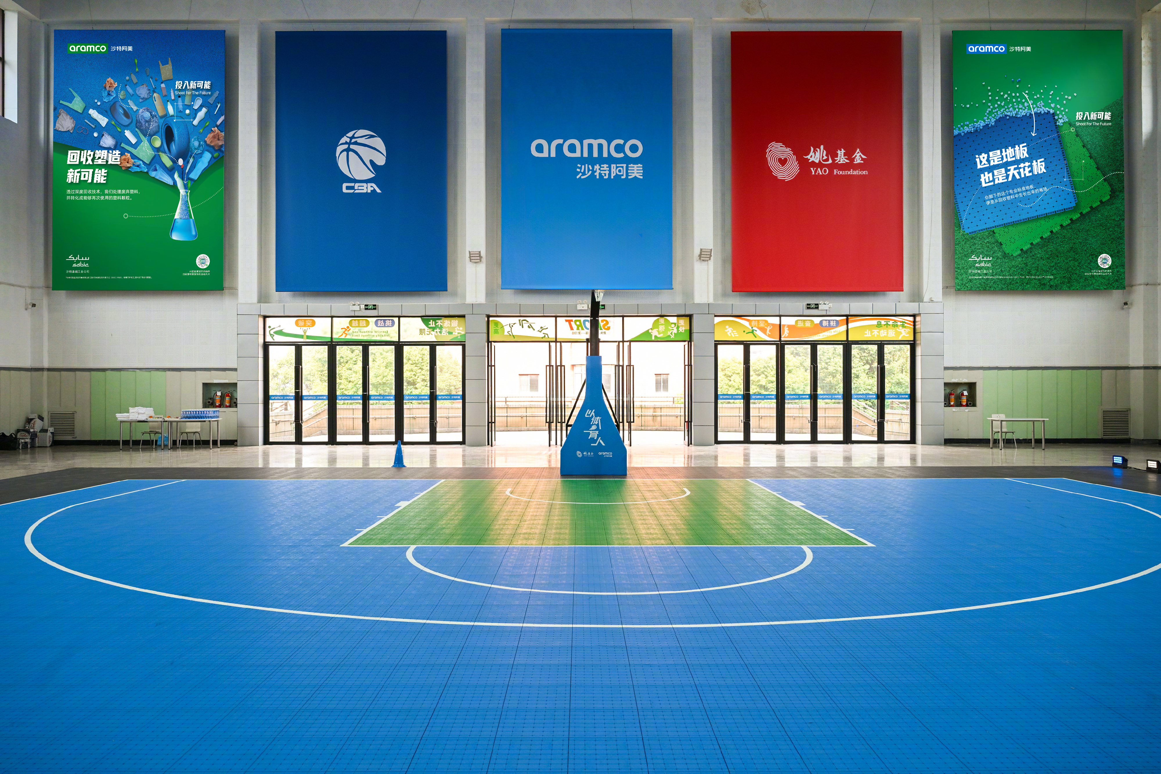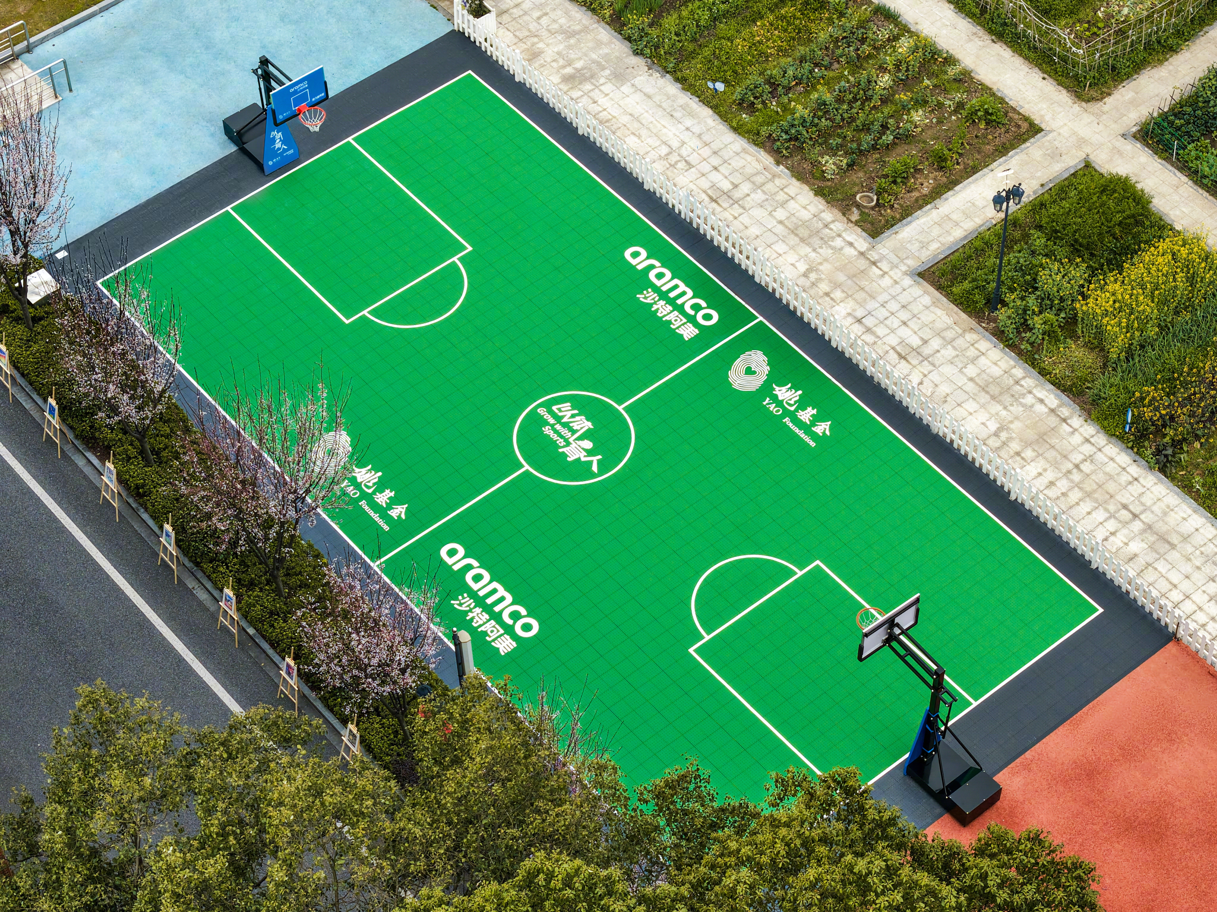 球场由沙特阿美联合姚基金与CBA共同打造。落成当天,胡金秋、赵继伟两位球员来到现场与孩子们互动,全明星主教练王博指导也耐心地教小朋友们投篮。