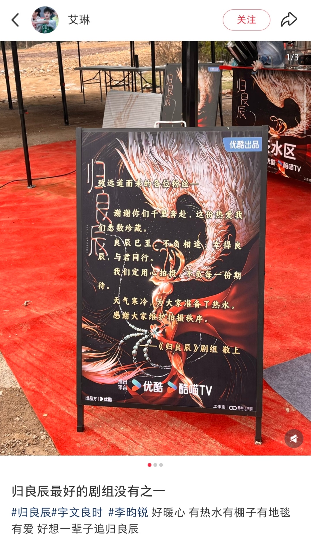 归良辰剧组逆应援这一块 归良辰撒饭型剧组