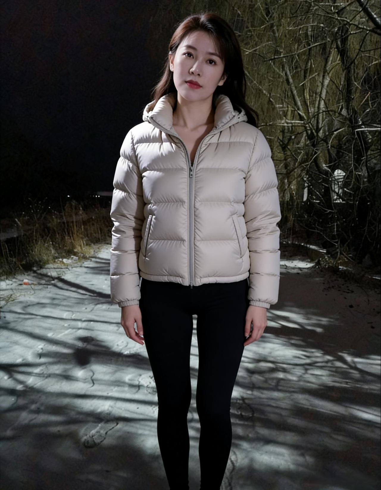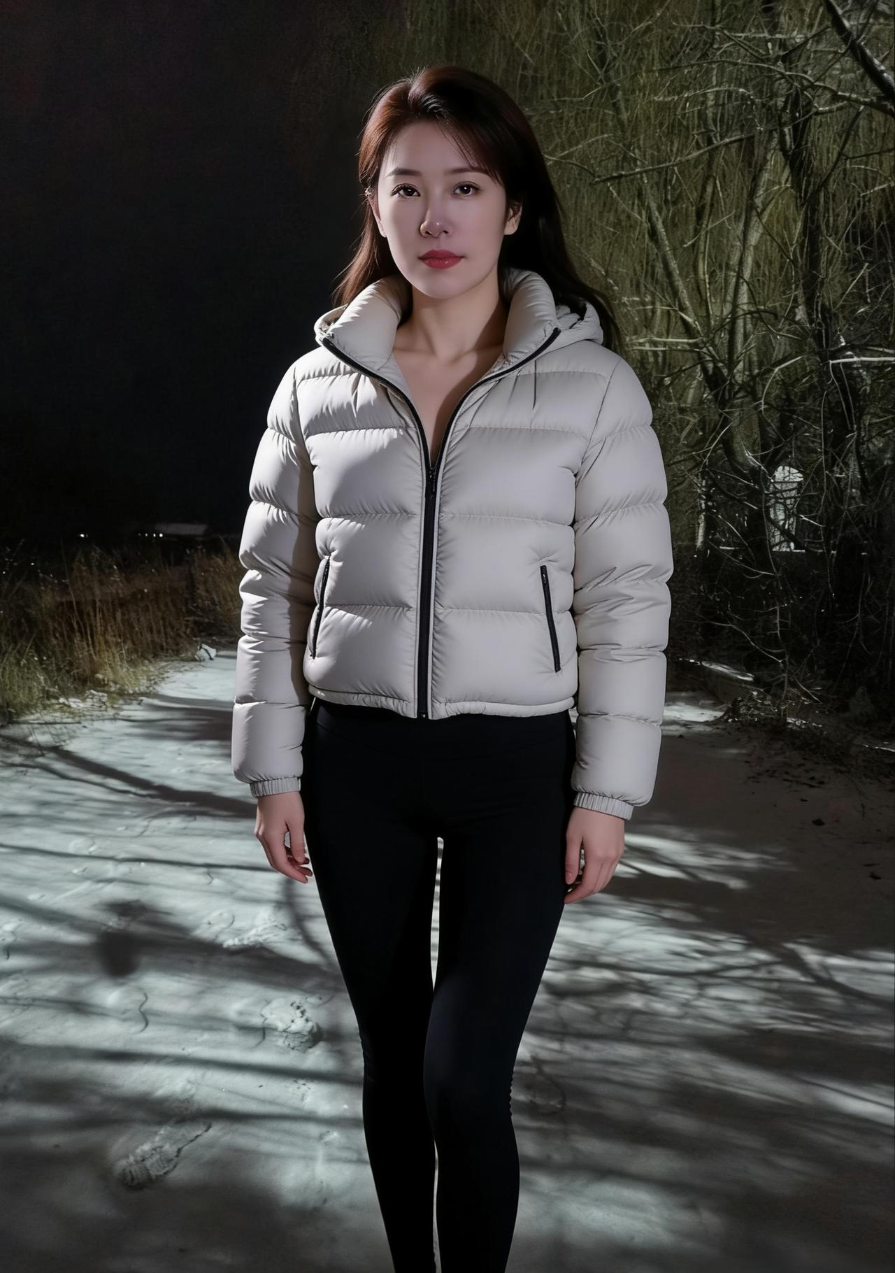 夜色如墨,雪色如银, 她是这黑白世界里,一抹温柔的晕。 米白的羽绒,像云朵落进人间, 黑色的裤脚,勾勒出风的曲线。 ~ 树影在身后,拉得很长很长, 她的脚步,却轻得像梦一样。 没有喧嚣,没有匆忙, 只有雪落的声音,和心跳的回响。 ~ 她的目光,穿过夜色的屏障, 像一束暖光,照进我心房。 不必言说,不必伪装, 一个眼神,便胜过千言万语的滚烫。 ~ 有人在远方,点亮了万家灯火, 而她站在这里,就是我的整个星河。 冬天再冷,也冻不住眼底的炽热, 世界再大,也装不下这片刻的执着。 ~ 她转身,衣袂带起一阵雪沫, 我知道,有些遇见,注定是一生的铭刻。 不必追问,不必不舍, 这雪夜的美人,早已住进我的诗册。