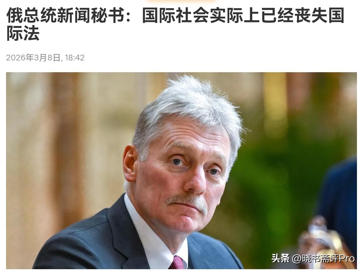 俄罗斯方面的这一表态,非常不妥当,这与我们一贯的立场相悖!3月8日,俄罗斯总统新闻秘书德米特里•佩斯科夫在接受采访时表示,不幸的是,我们大家都失去了所谓的国际法。坦白说,我现在甚至不明白,怎么还能要求某个方面遵守国际法规范和原则,它实际上已经不复存在。在法律上国际法仍然存在,但事实上它已经不复存在了。 很显然,作为俄罗斯政坛有影响力的人物,佩斯科夫的这一表态非常的不妥当。也许佩斯科夫的本意是美以打击伊朗事实上严重破坏了国际法,这让国际法的效力荡然无存。但问题是,即便美国带头破坏国际法,难道各国,包括俄罗斯,就要接受国际法被破坏的一套国际秩序吗? 一个大国带头不遵守国际法的社会,事实上就是丛林社会,弱肉强食的社会,难道俄罗斯的外交政策是要实现这种目标吗?很显然,佩斯科夫所表达的立场这是有问题的,也与我们一贯的立场相悖。国际法是维护全球公平正义的底线,绝对不是大国发泄不满,放弃责任的借口。 佩斯科夫此番“国际法已不复存在”的表述,看似是对美以破坏规则的愤怒回应,实则顺势承认了“法律无效”,给霸权主义递上了合理化的说辞。世界不能退回丛林法则,国际法必须得到共同遵守。挑明规则被破坏,不等于宣告规则死亡;批判霸权横行,更不等于认同丛林法则。恐怕佩斯科夫的表态,并不能代表俄罗斯官方的立场。