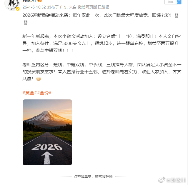 每一位能够信任加入进来的粉丝朋友都是对老韩团队最大的认可和支持,感谢每一个并肩同行的伙伴,刚好你需要,正好我专业!收获的起点从不是盲目尝试,而是跟对人,做对事的精准判断!与其在这市场中独自摸索,浪费机会,不如果断选择靠谱的引路人!老韩一直都会在这市场上,在此静候每一位渴望突破,追求稳定盈利的你!