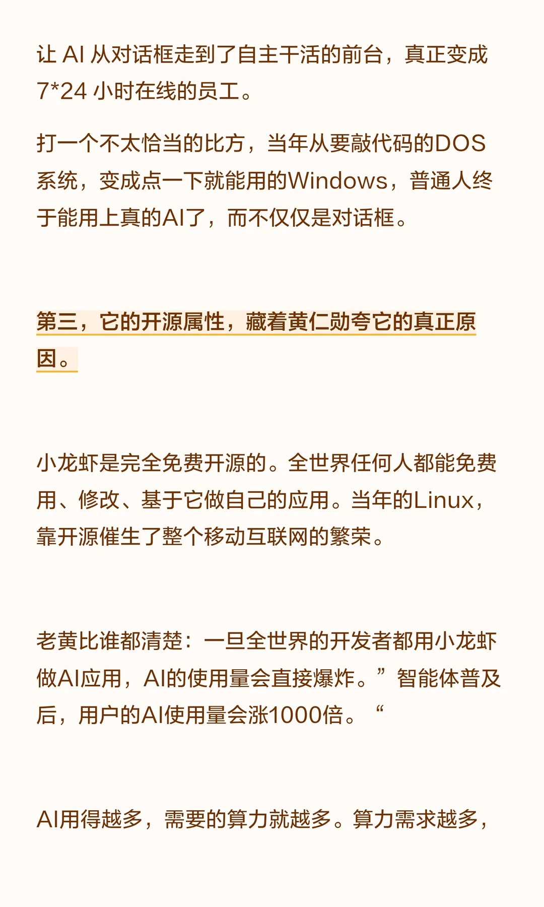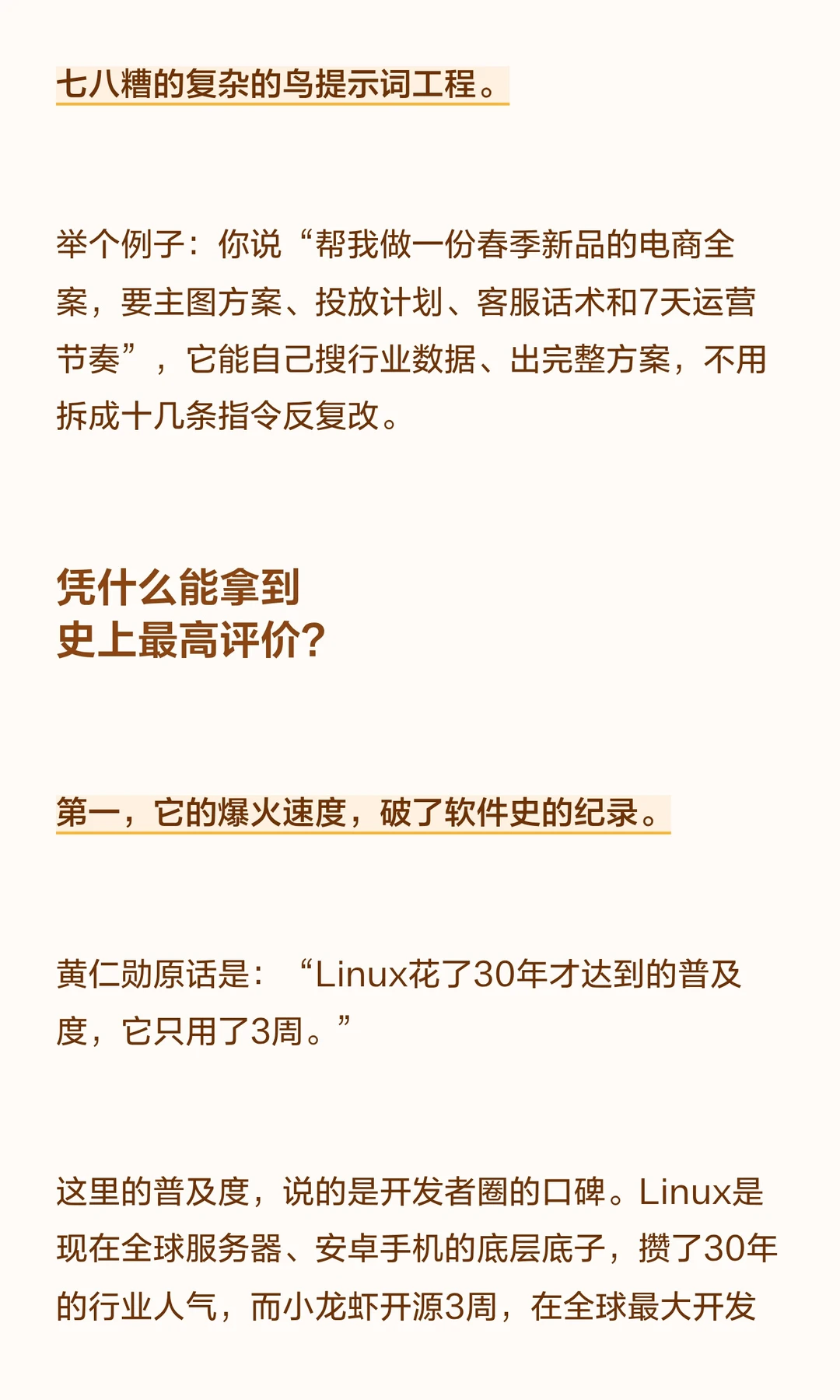 黄仁勋原话是:“Linux花了30年才达到的普及度,它只用了3周。”