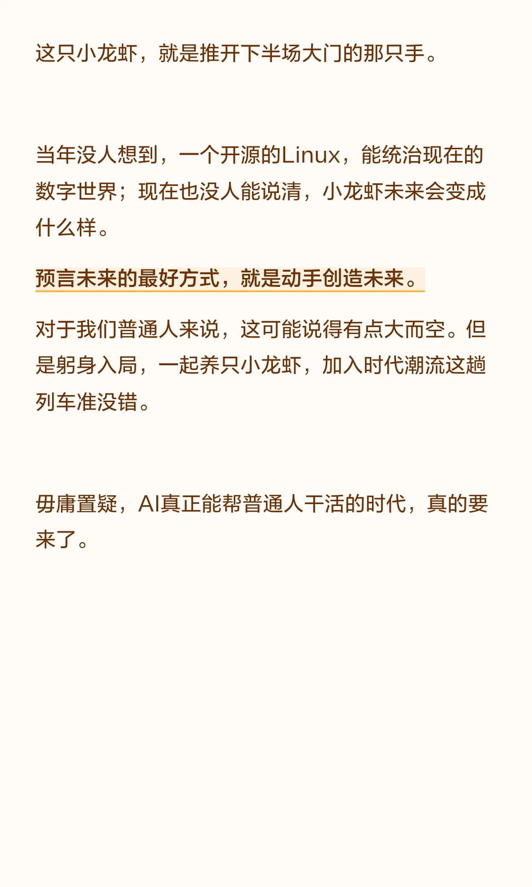 他做了几十年科技,见过Windows、Linux、安卓这些真正改变时代的软件,从来没给过任何一款产品这么高的评价。被他捧到顶的「小龙虾」,开源才一个多月,火爆已3周。