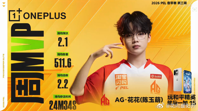 AG花花三连周MVP 成都AG花花的三连周MVP🏆,搭配队伍的三连周冠,希望始终保持敢打敢拼的劲头,后续每一场都能发挥出最佳水平。