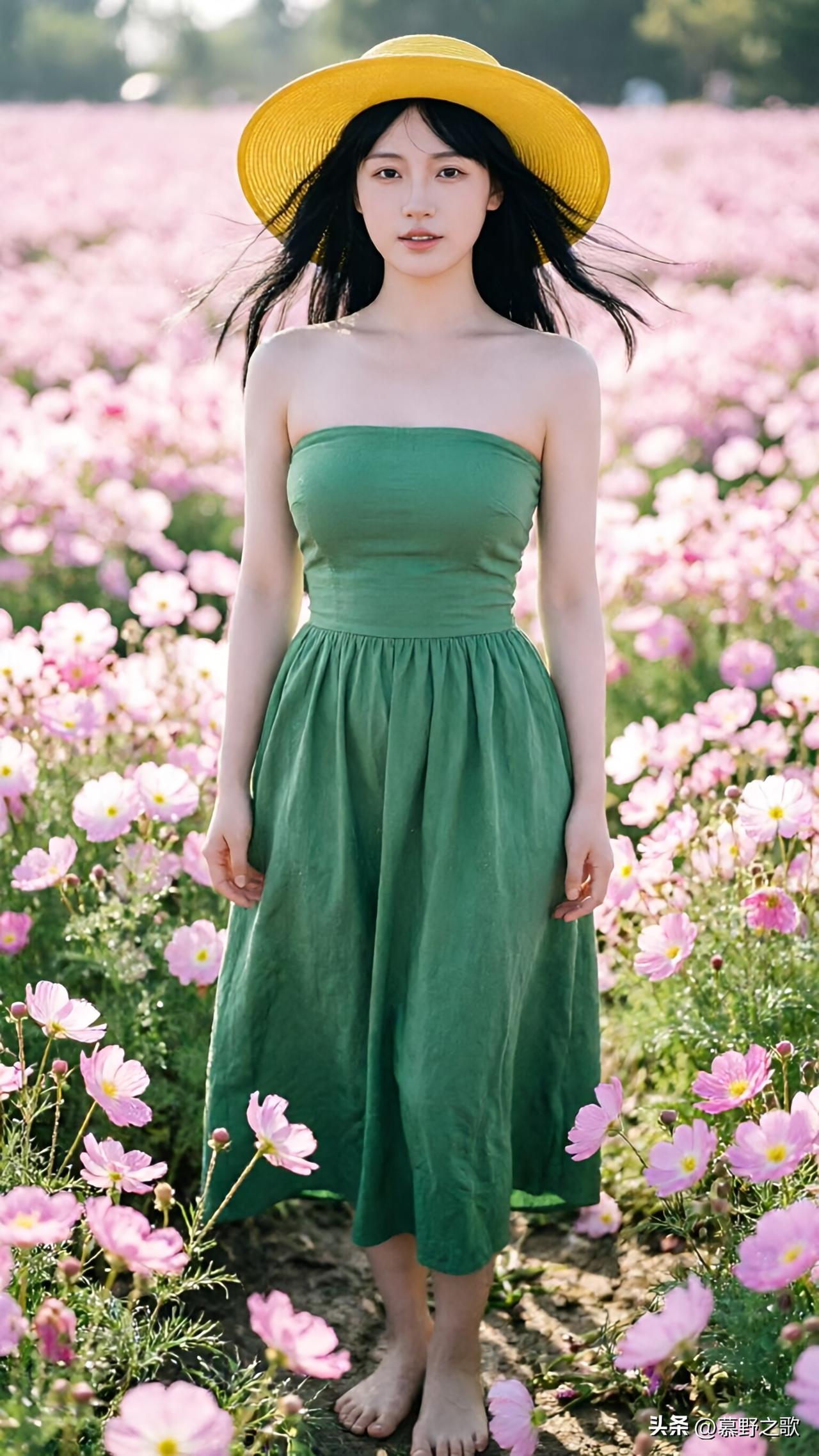 绿色长裙在花海里站成一幅画,可赤脚的我,却在泥土里慌了神。我本想拍“森系精灵”,却忘了带鞋,赤脚踩在花瓣上,痒得想笑又想哭。花太盛,像一场盛大的邀约,可我怕弄脏裙摆,又怕辜负这烂漫。昨天摄影师说“要放肆一点”,可我习惯了端着,连呼吸都小心翼翼。风把帽檐吹歪,露出凌乱的发,我忽然想起小时候在田野疯跑的日子,那时的快乐多简单。矛盾像花茎的刺,扎得我既想融入自然,又怕破坏美好。我深吸一口气,任花瓣落在肩头,原来真实的自己,本就该和泥土、花香共生。 花海人像 自然风写真 少女与花 情绪摄影