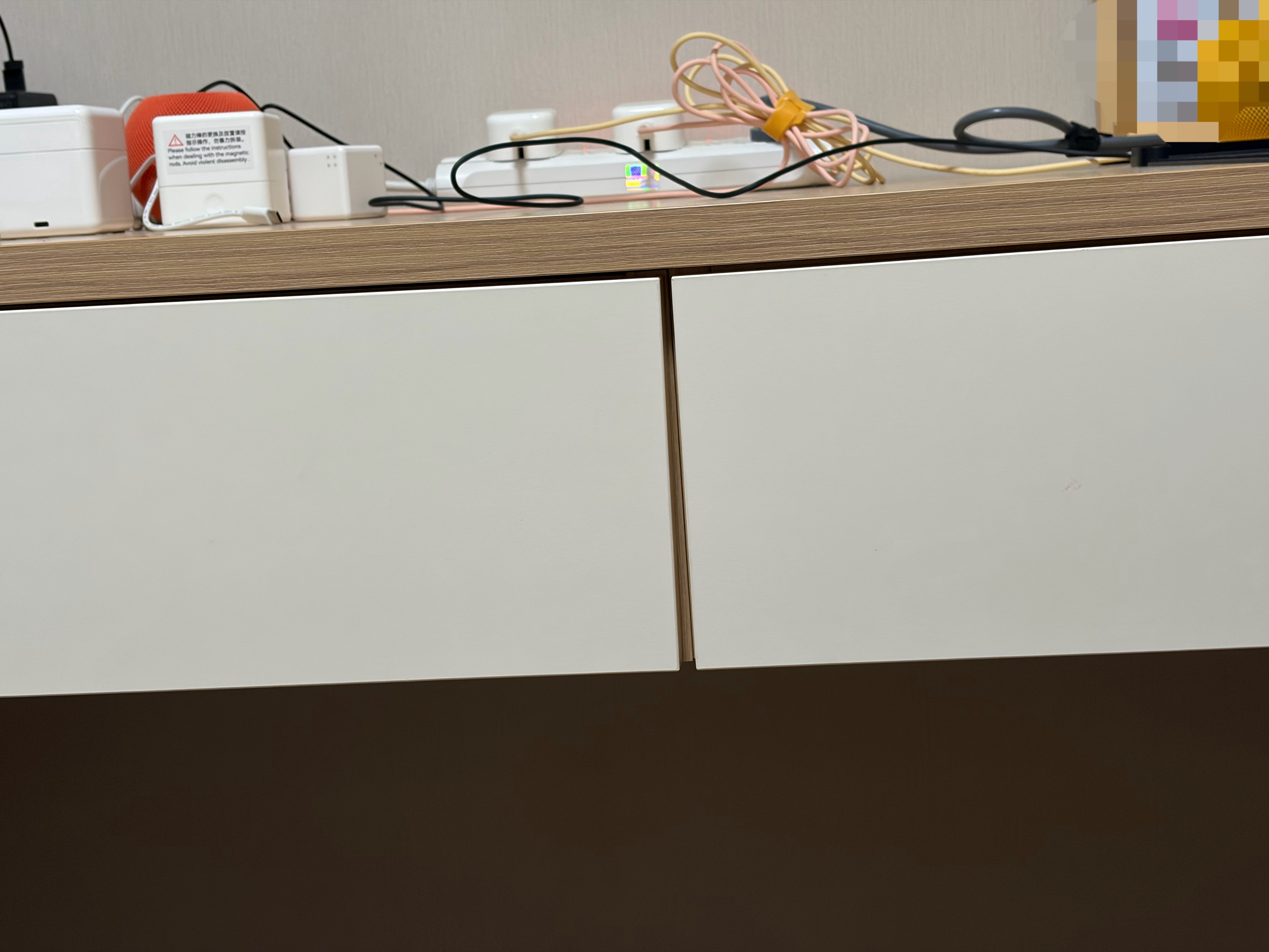 我这桌子上本来放了一台 iMac,今天已经拿下来放地上了,不敢放了从图 2 这个抽屉缝能明显看出来桌子已经弯了……