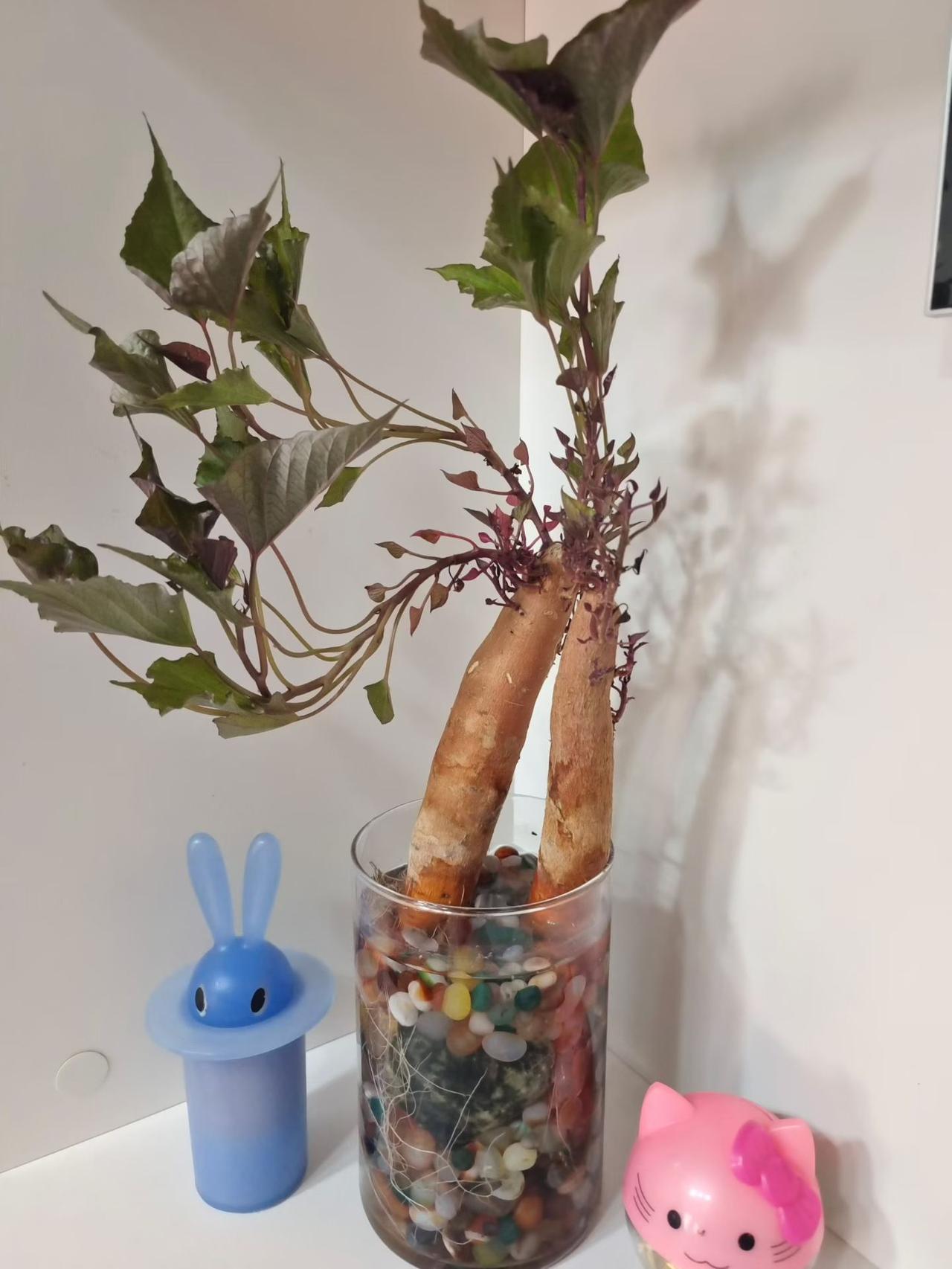 今日随手拍朋友家的水培红薯盆景,只用一个瓶子,几个石子,加点水,就养成了一个美丽