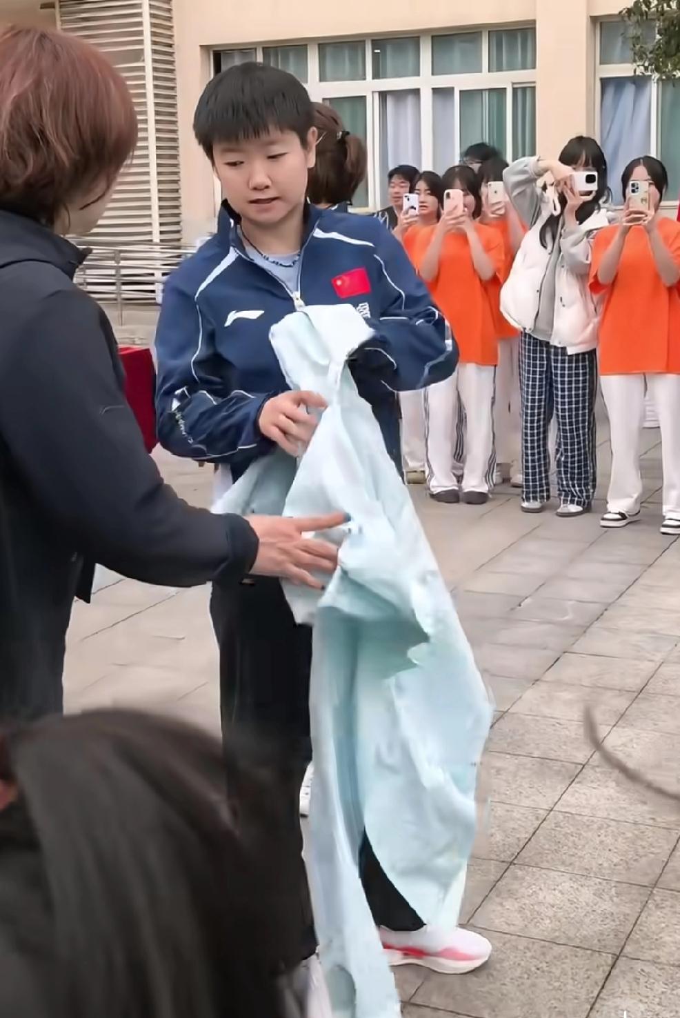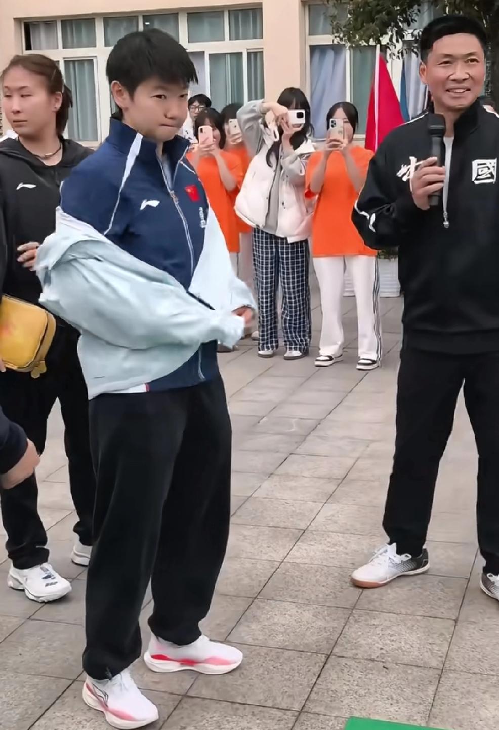 昨天有网友传言说孙颖莎回了北京参加活动了, 哈哈人家刚到重庆怎么会这么快回京呢 昨天其实是莎莎去了重庆的某中学参加了活动。 从车上走下来就让同学们尖叫不已, 偶像终于来了。 在演讲环节孙颖莎同学用自己的亲身经历激励着学生们:遇到困难与挫折要相信自己不要害怕。 我想大概能上一堂这样的课我会让学生们受益匪浅, 每当遇到困难的时候要相信自己, 孙颖莎在赛场上大概就是这样做的, 是日复一日的训练给的底气。 加油努力, 为了有困难的时候相信自己。