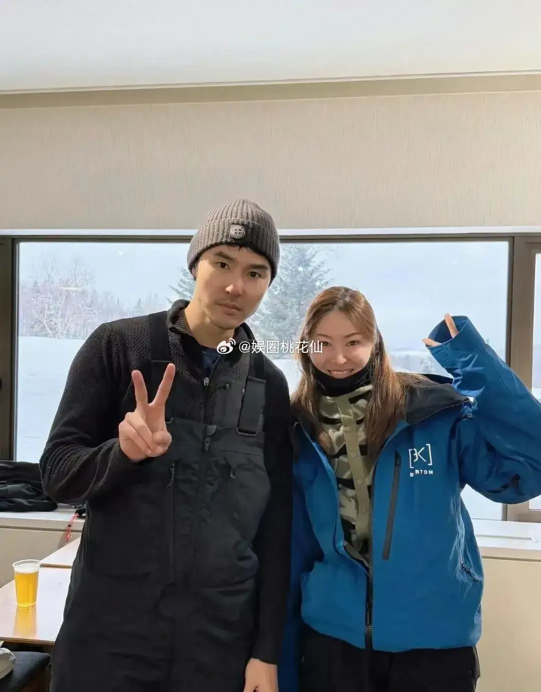 阮经天日本滑雪穿背带裤毛线帽痞帅十足 脸上的胡子显得好有男人味