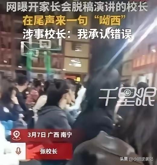 南宁某校长家长会发言时,说完“呦西”引发热议,一句“呦西”带火一校! 南宁某校长在家长会发言时,说完“呦西”引发热议,这个“呦西”很反感,随即登上热搜第一!对于南宁某校长在家长会上说完“呦西”的搞笑视频,一句“呦西”让视频很应景,也让网友大跌眼镜,没想到是口误还道歉,其实这个能登上热搜并引起网友这么大的反应,说明还是触碰到了大家的敏感神经。 对于历史每个人都应该尊重,作为教育者更应该谨言慎行,而不是轻易的开玩笑。要知道一句话的轻重缓急,那是关系到学生和家庭的信任,你一句玩笑话可能就会让多少家庭对你的教育机构失去信任。如今是互联网时代,你的一句失言可能就会被放大百倍千倍,那后果不堪设想。