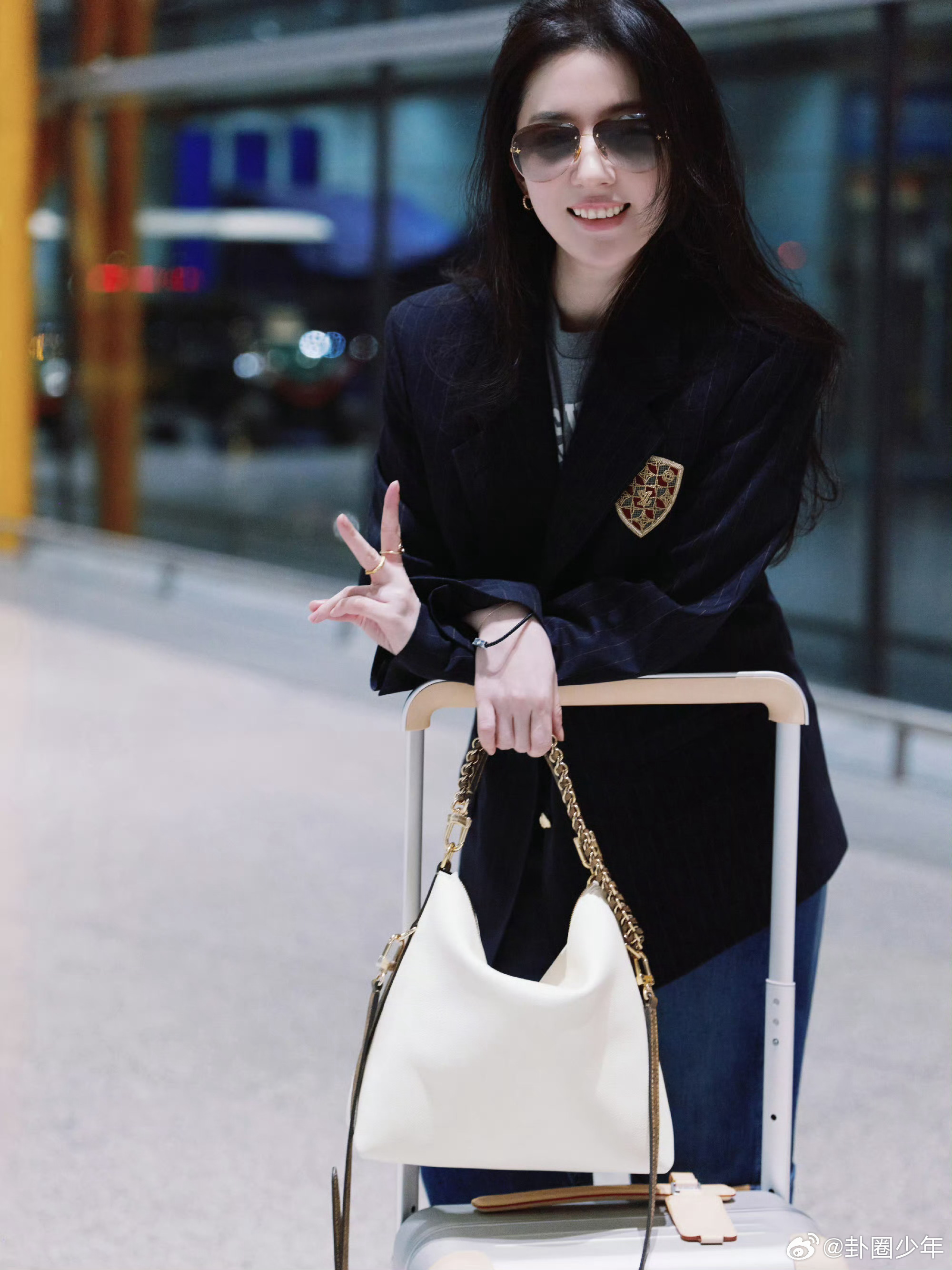 刘亦菲时装周机场出发图神仙姐姐自带高光,机场出发图美到窒息,酷飒风格又美又拽,每