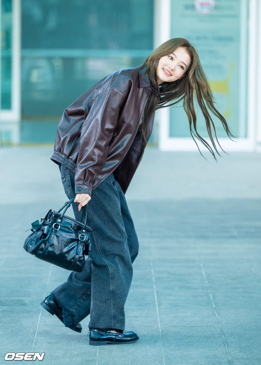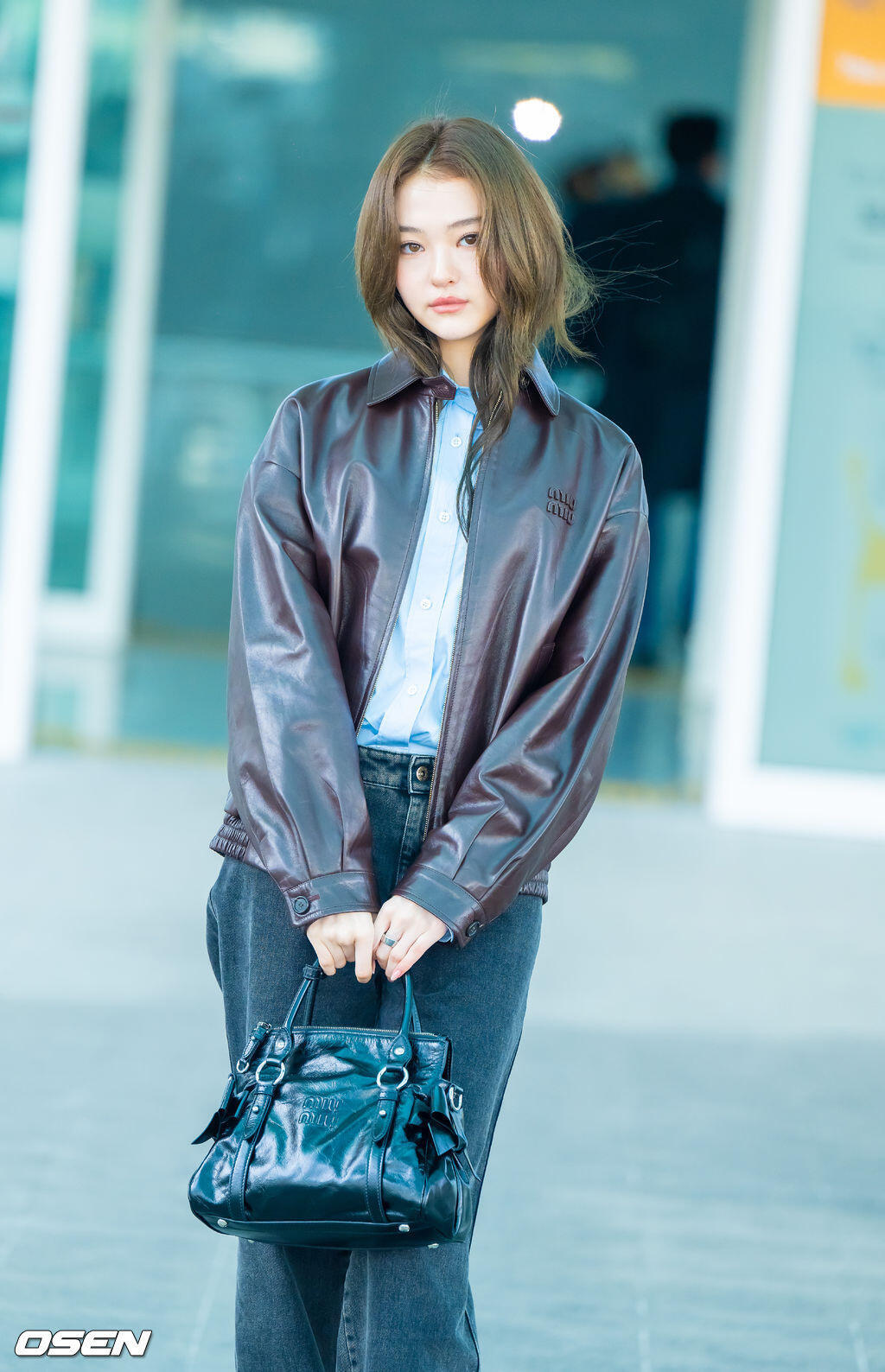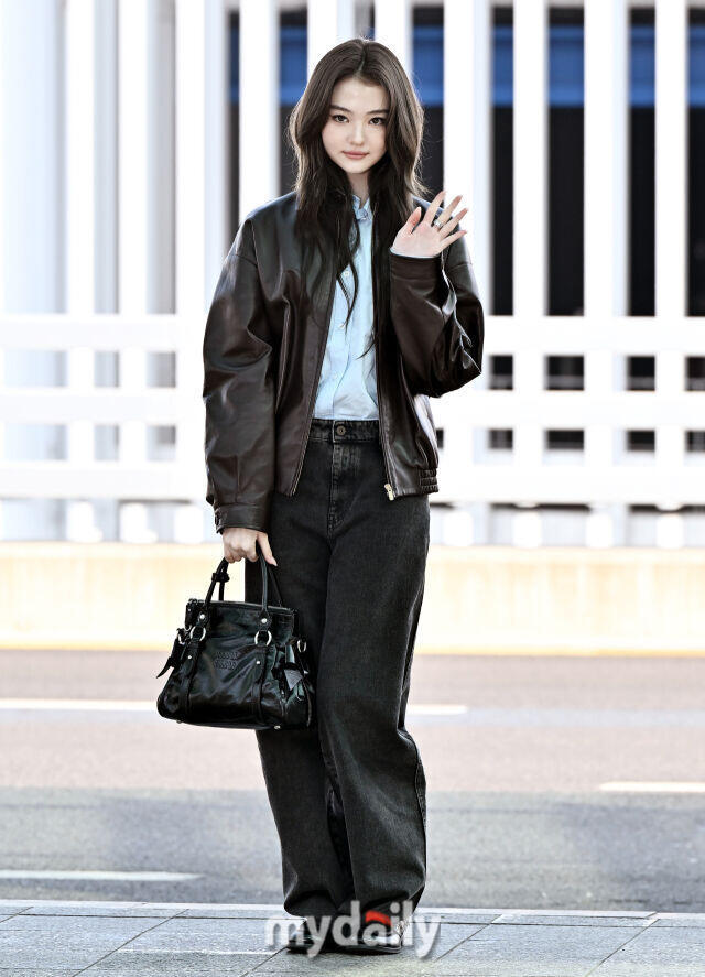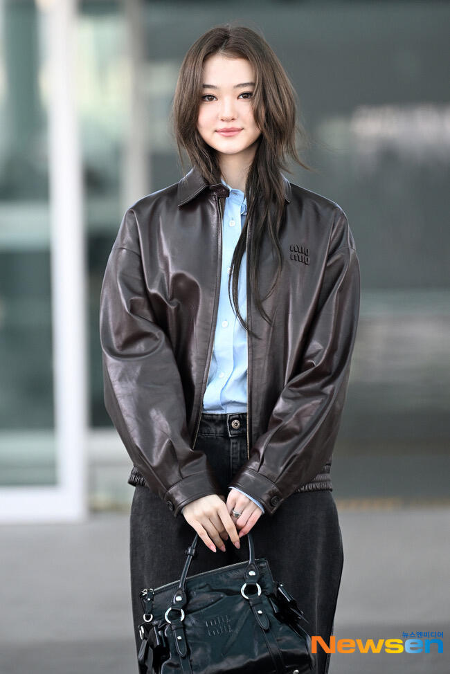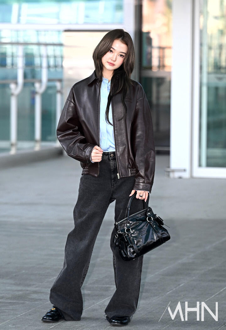 ella 机场出发miumiu巴黎时装周,今年皮衣造型好多啊Celine也是。时装周巴黎时装周