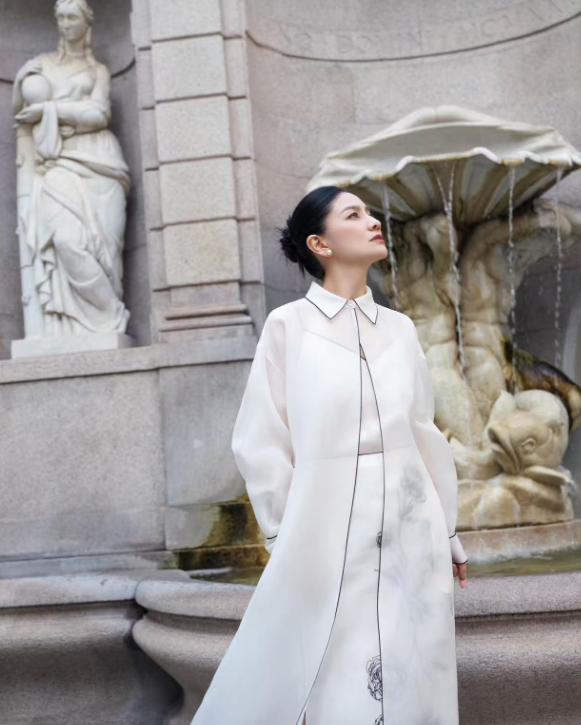 被50岁胡可的新造型惊艳了 穿薄纱长外套+印花裙,简约又高级!