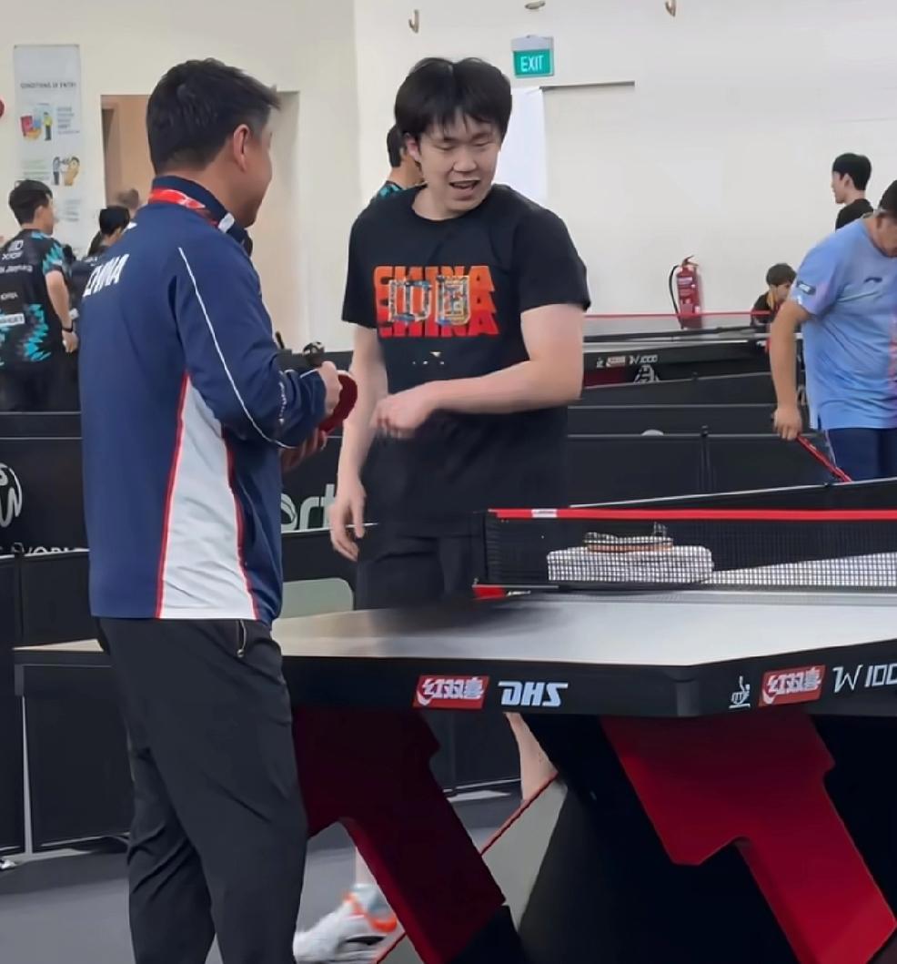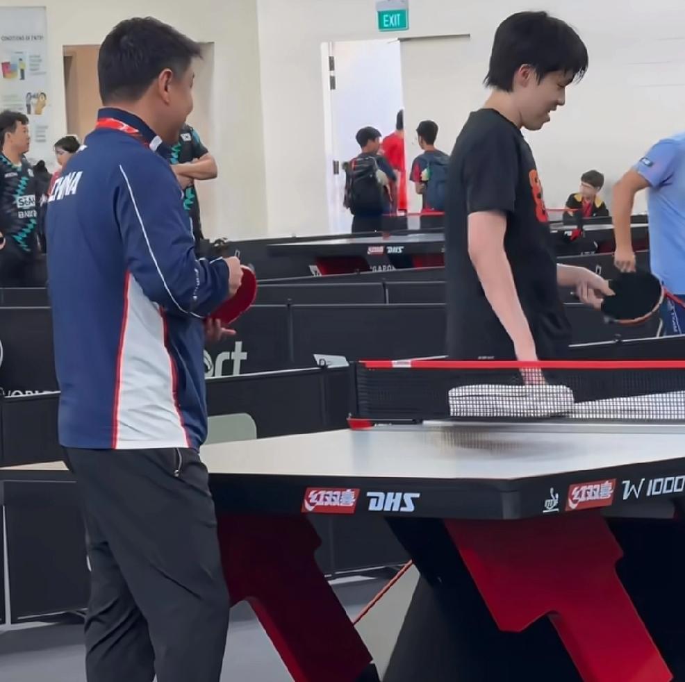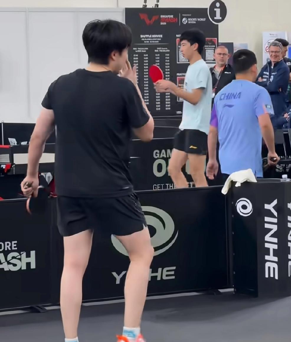 昨天看王楚钦在重庆的训练视频, 感觉以后在楚钦的乒乓球里再无副拍, 让人不愿想起的巴黎奥运会王楚钦的拍子。 现在看训练都是每副拍子都是换着练, 昨天也是练了一会把拍子给了王皓, 王皓拿着球赛看了又看。 还有啊楚钦每次训练总能让外协会教练球员停下来观看。 这次冠军赛大概有可能第二轮就又会遇见法国的直拍, 王皓也是直拍。 加油,比赛加油!