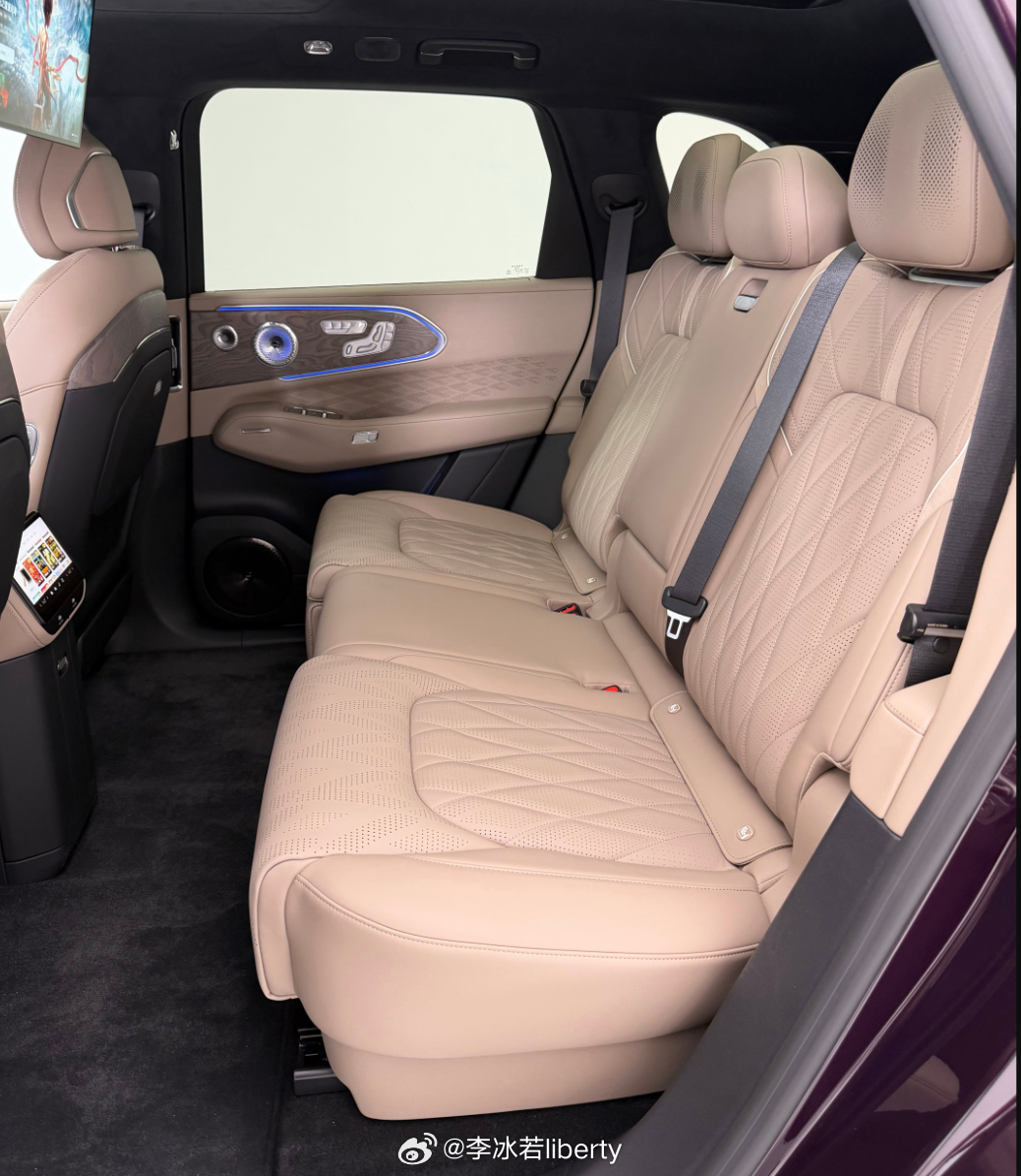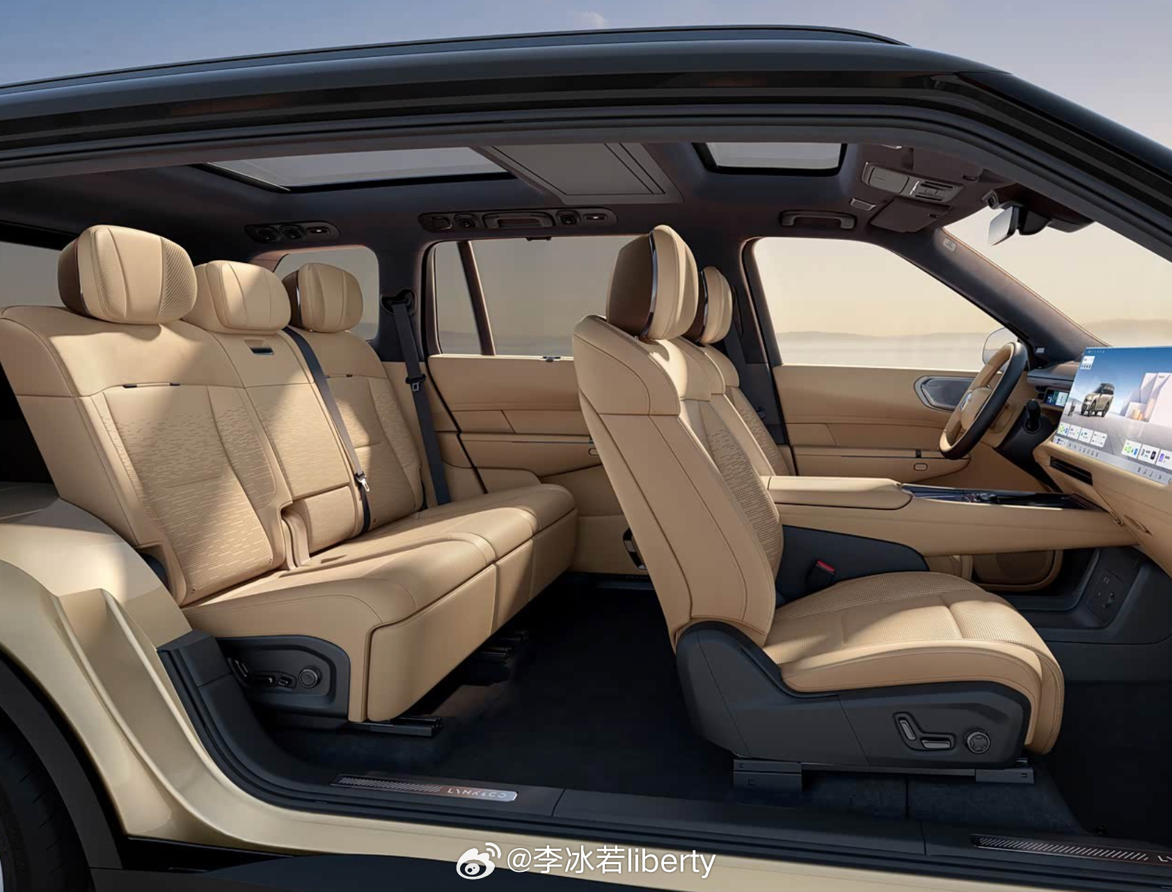吉利系开年两个大5座极氪8x / 领克900确实很意外带电视、滑轨长、后排座椅调节角度大、内饰豪华所以今年开卷大5座了?极氪8X内饰首发大v聊车