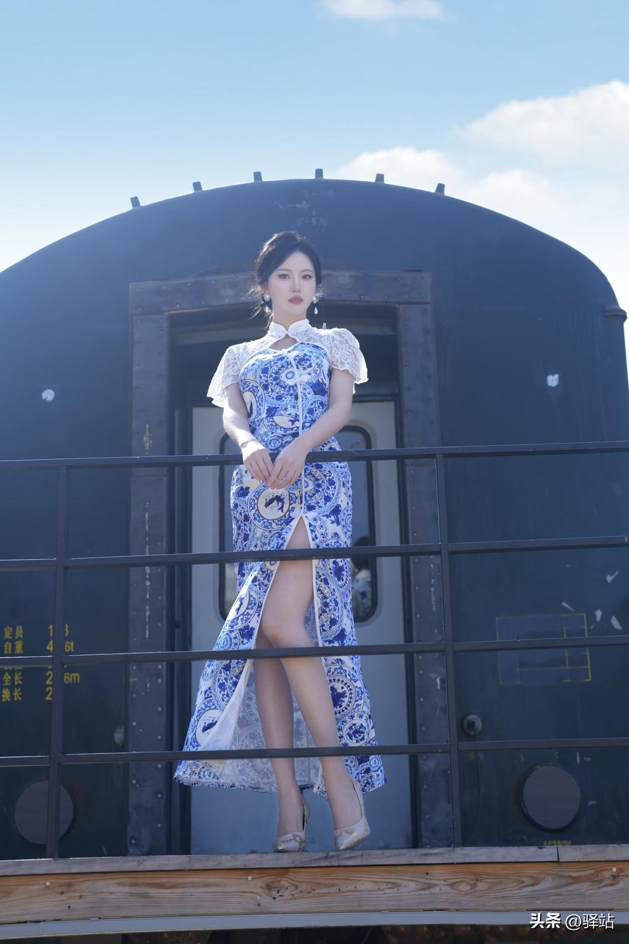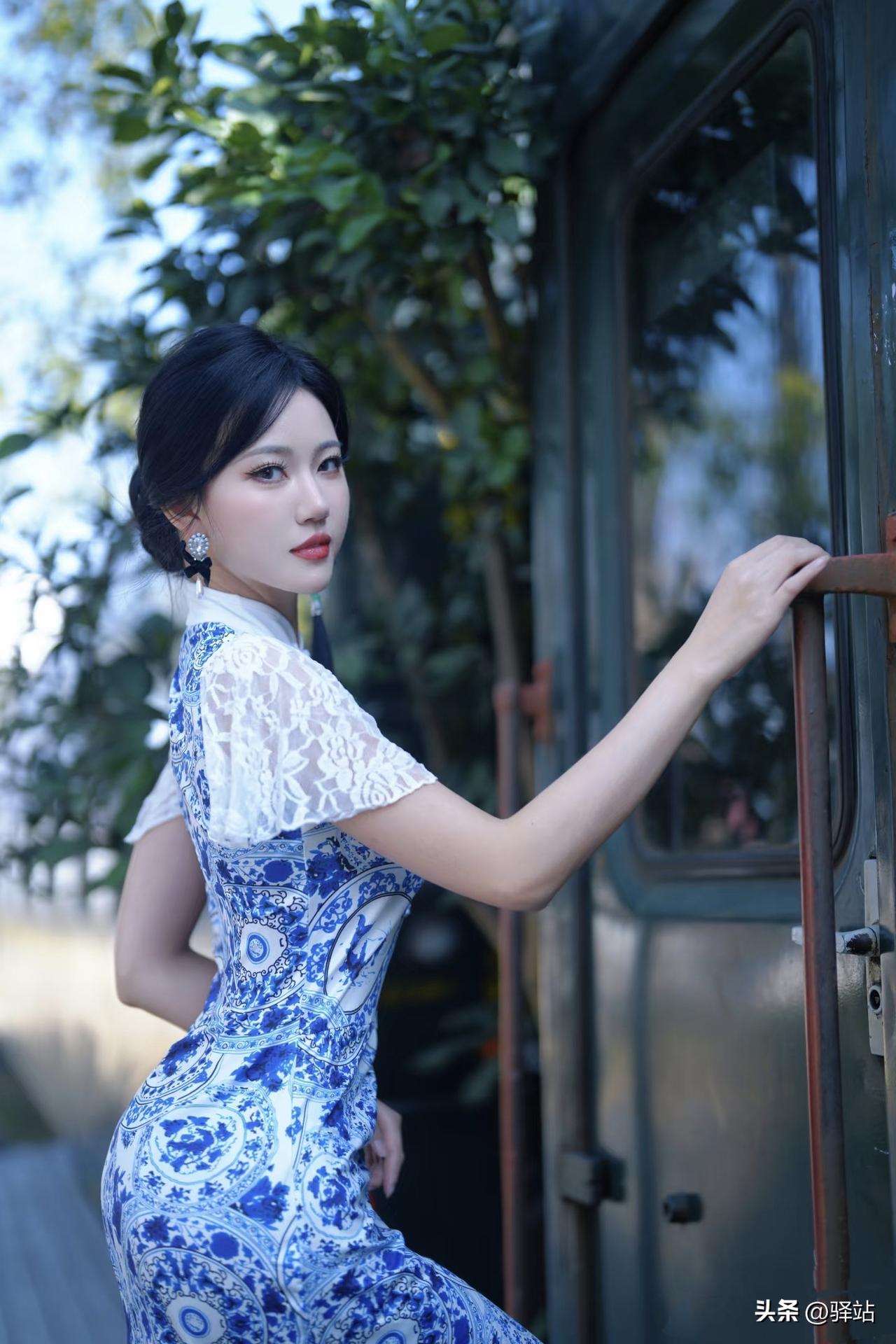 美图欣赏,看图写诗,情感解读 《青花别绪》 七言绝句: 青花染就一身霜, 铁轨牵愁向远方。 欲把相思裁入袖, 风掀衣袂惹离殇。 ​ ​现代诗意: ​青花染袖,铁轨作笺。她立于蓝天之下,一步一帧,皆是国风的诗行;回眸浅笑,清丽如瓷,把旧时光的温柔,酿成了此刻的清欢。 ​ ​清丽短句: ​青花映日,铁轨牵风,她在站台, 等一场未名的相逢。 ​ ​情感解读: ​青花旗袍是行走的诗,铁轨是岁月的笺。她立于蓝天绿树间,回眸时,古典的温柔与现代的清欢撞个满怀——原来最美的生活,是让传统在时光里鲜活,让每一步都踩在诗意的节拍上。 治愈系青花裙语 图片来源于网络,侵删