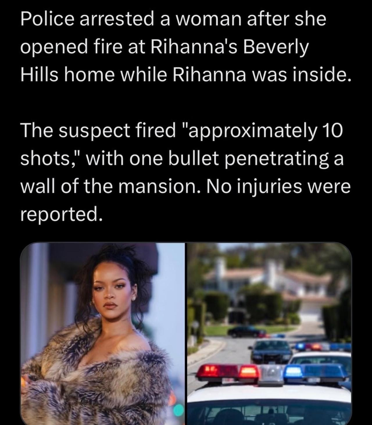 超级巨星蕾哈娜在家中遭一女子开枪袭击,当时蕾哈娜本人恰好在家。 开枪女子下手也狠,直接奔着人命去的,一口气开了10枪,其中有一枪打穿了蕾哈娜家中的墙壁。 好在最终有惊无险,没有任何人伤亡,设想下事发之际蕾哈娜要是站在窗边或者暴露区域,后果真的不堪设想。 没想到外国富人区的安保就这个水平,想想就让人汗毛直立。