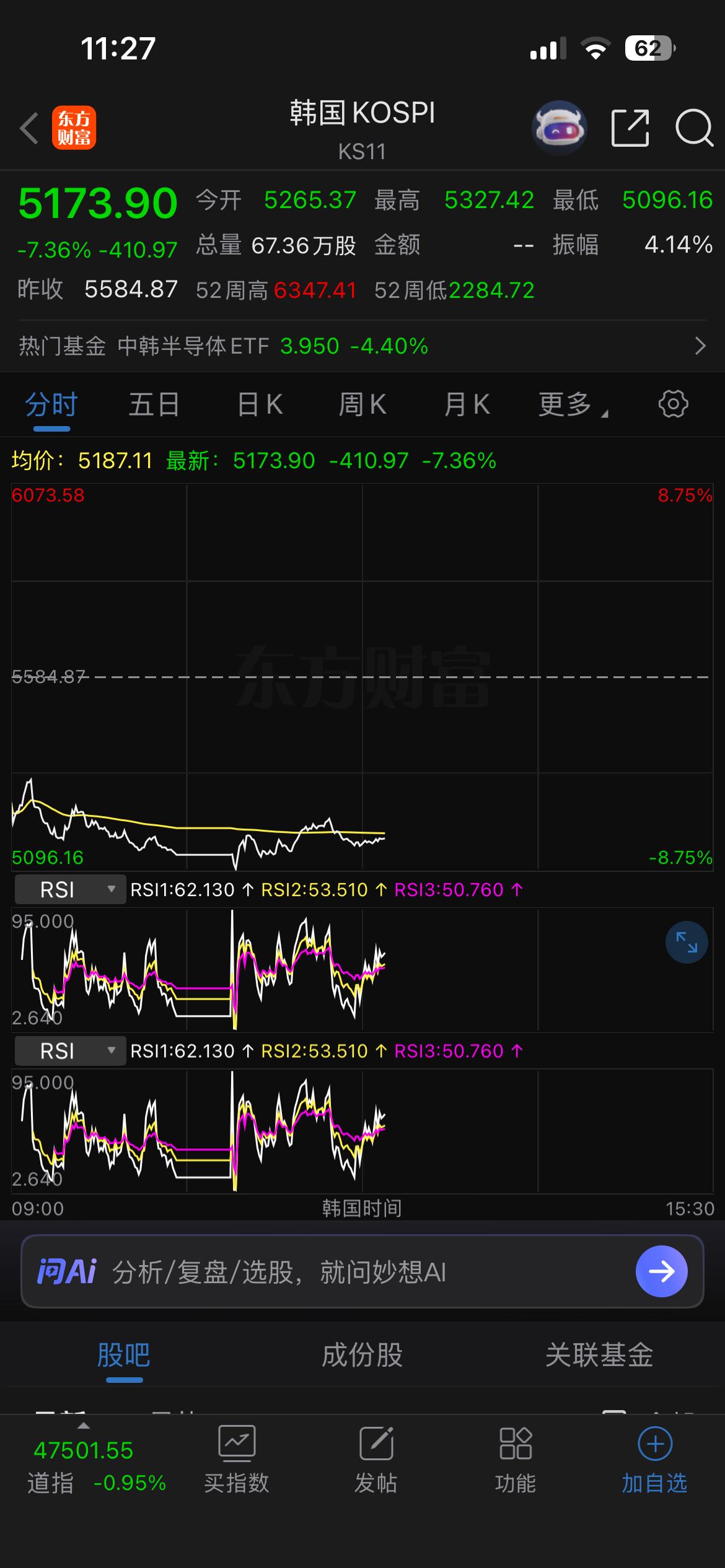 韩国股市再次暴跌熔断,5个交易日熔断了4次。 日经225指数也暴跌7%,几乎抹平了今年来的所有涨幅。相比较咱们大A已经很坚挺了,只跌了1个点。 原油在上周五大涨12%+的基础上,今天再次大涨25%,小哈梅内伊的上台,让中东战争向更加不确定的方向发展。 霍尔木兹海峡近期如果不放行,那么中东产油大户们就要集体停产了,因为没有足够的储存原油的能力了。一旦停产,即使海峡放开了,短期内也很难恢复原油的正常流通。那国际原油涨到什么价格可真不好预估了。 现在不好搞啊,注意仓位,躺平了…… (以上仅代表个人观点、投资有风险)