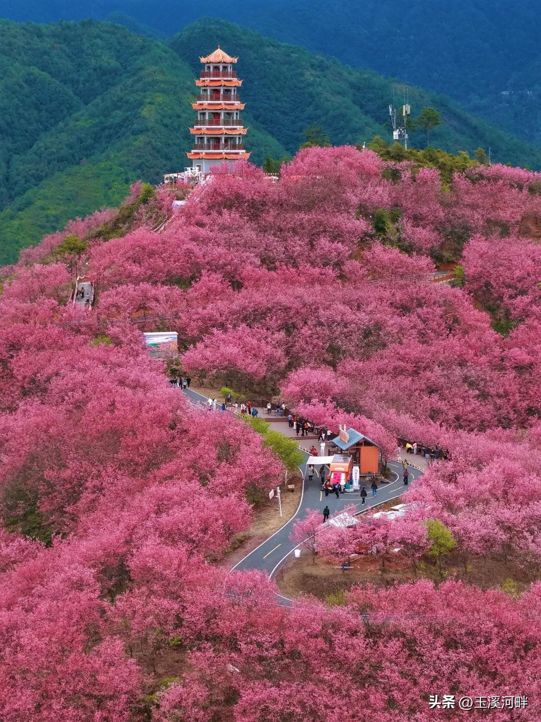我去的那天有很多游客,所有人都惊叹福建西部山区竟然还藏着这样一个宝藏旅游地。其他地方的樱花园都是建在平地,赖坊镇樱花园是随山势起伏,从山脚向山上层层铺展,很有层次感。山顶还建了个宝塔,站在塔上从高处俯瞰,樱花就像粉色的云霞在山坡上流淌,此景只应天上有。 尤其是雨后云雾缭绕时,在山峦中如同仙境般的花海,能够抚慰浮躁的心,值得为这满山的粉黛而来。更美妙的是,这里的樱花有20多个品种,赏花期长达三个月,别的地方一般花期只有一个月。春风有信,花开有期,整个春天都有充足的时间感受这份浪漫。 听说以前这里是荒山野岭,后来有人投资栽种樱花,经过多年辛勤耕耘,形成了今天这么大的规模。每年都会举办跟樱花有关的民俗文化活动,吸引了八方游客,也带动了赖坊镇的餐饮、农家乐、民宿的发展。 赖坊镇离清流县城有50多公里,如果没有这个樱花园,有谁会跑到这么偏僻的乡村来旅游观光呢?不过赖坊镇毕竟是在乡下,外地游客来这里还是没那么方便,要先坐动车到清流县城,再转乘客运中巴。