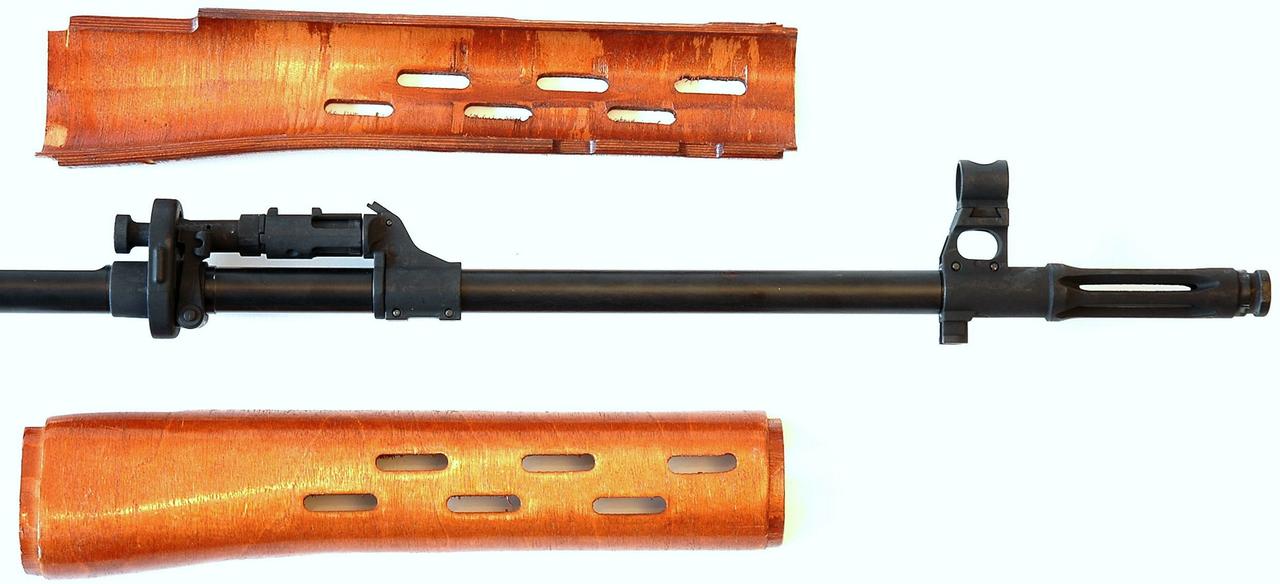 [呲牙] 朝鲜人民军的某型狙击步枪——看上去像是 苏联 SVD 狙击步枪,但枪口消焰器却与俄国人的设计不同。SVD 狙击步枪采用的是瓣形消焰器(参加图2),有5个开槽。而照片中这款朝鲜人民军的某型狙击步枪却采用了多室消焰器,看上去倒颇为类似 SVT-40(参见图3)。