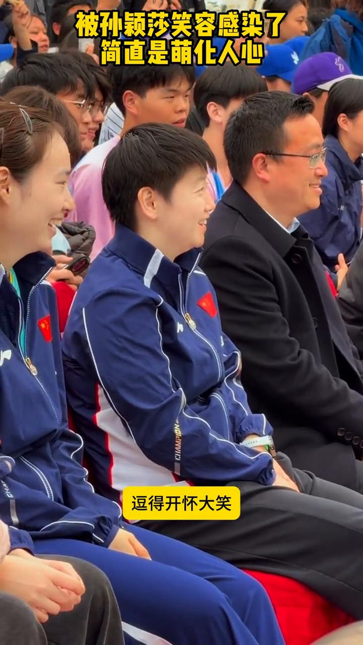 孙颖莎重庆参加校园活动。 被孙颖莎的笑容感染了。孙颖莎重庆参加校园活动,看学生打球,逗得开怀大笑,小脚荡悠的好可爱,像个孩子一样,简直是萌化人心。这样可爱的莎莎谁会不喜欢?
