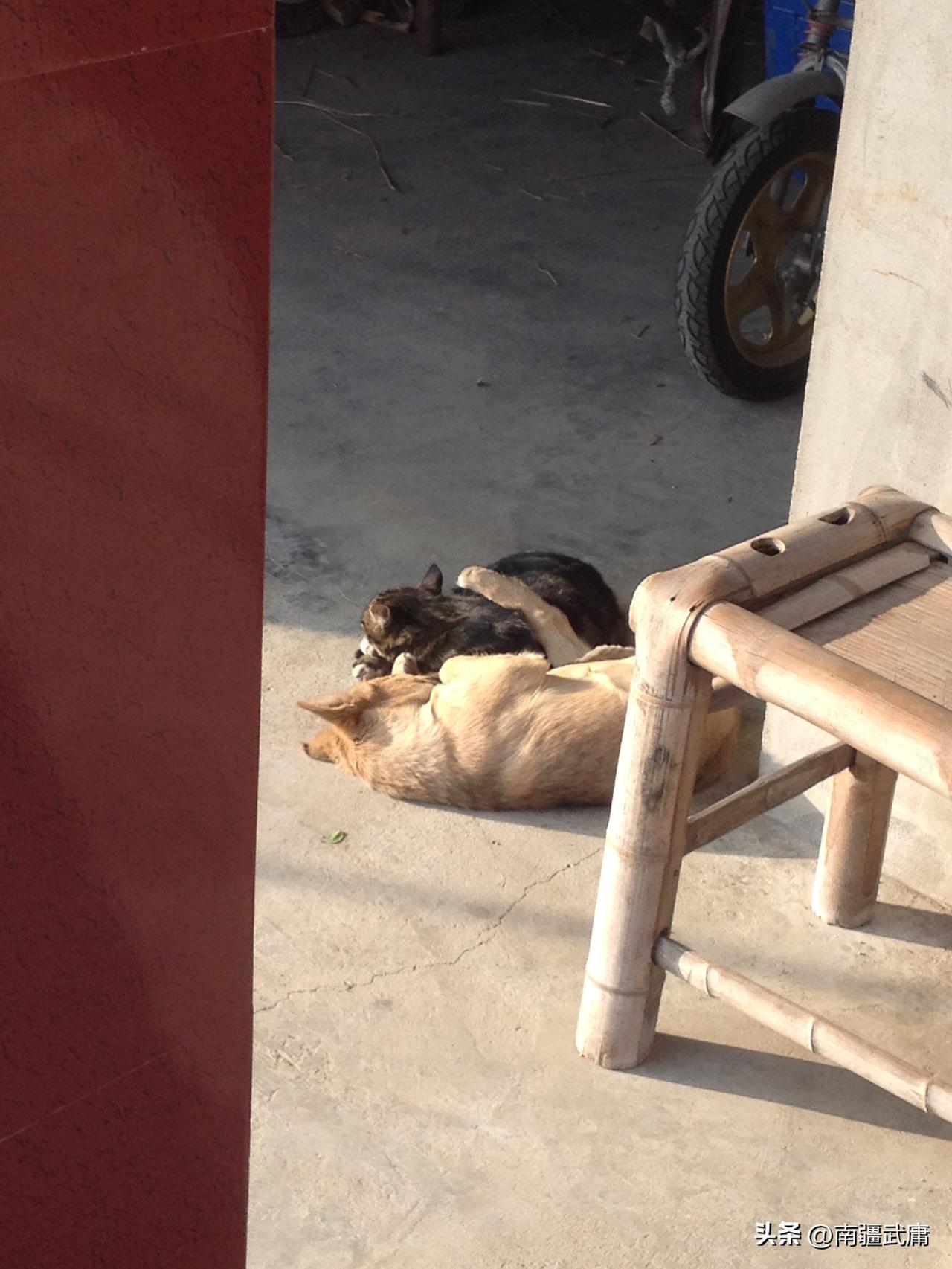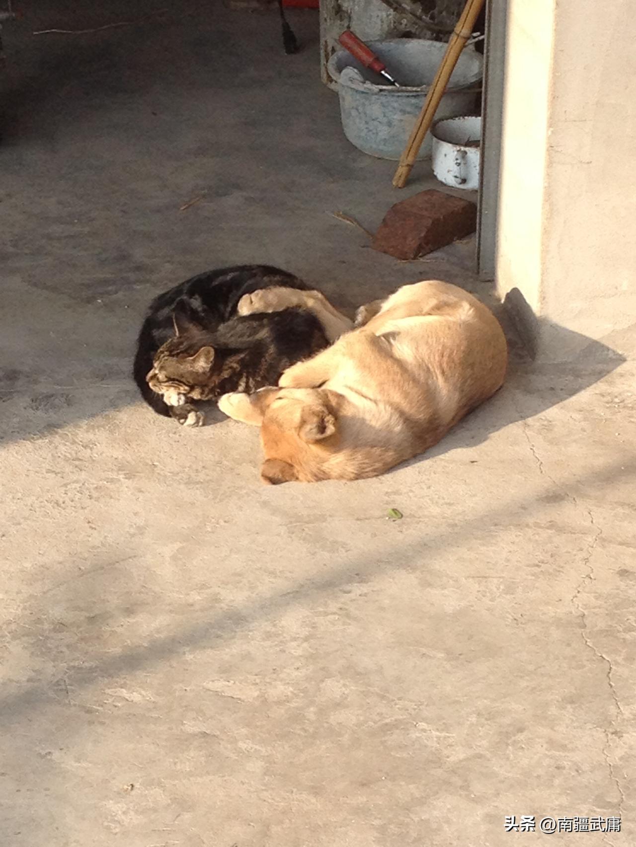 正在晒太阳的超有爱的一幕 猫猫狗狗相拥而眠