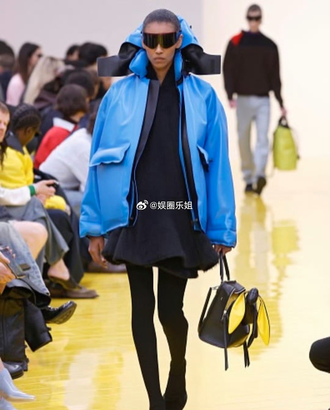 2、廓形|直觉与经验的平衡建筑感夹克以柔和肩线展现精准剪裁,而包裹式毛绒大衣则以夸张轮廓释放直觉想象。两种美学在T台上形成微妙张力,恰是设计师“介于直觉与经验之间”的创作哲学体现。