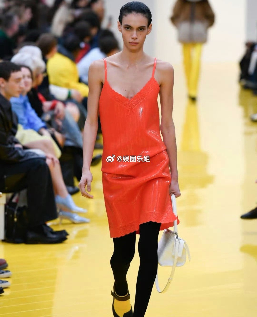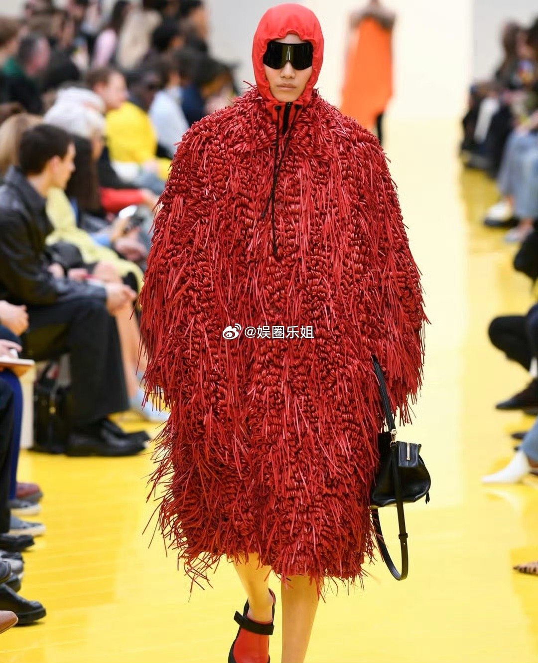 大秀幕后的更多细节呼应主题:- “渔网”抹胸裙融合工艺与幽默- 透明乳胶靴“回旋”上一季果冻鞋设计- 3D打印浮雕蕾丝裙实现传统匠艺与科技的融合