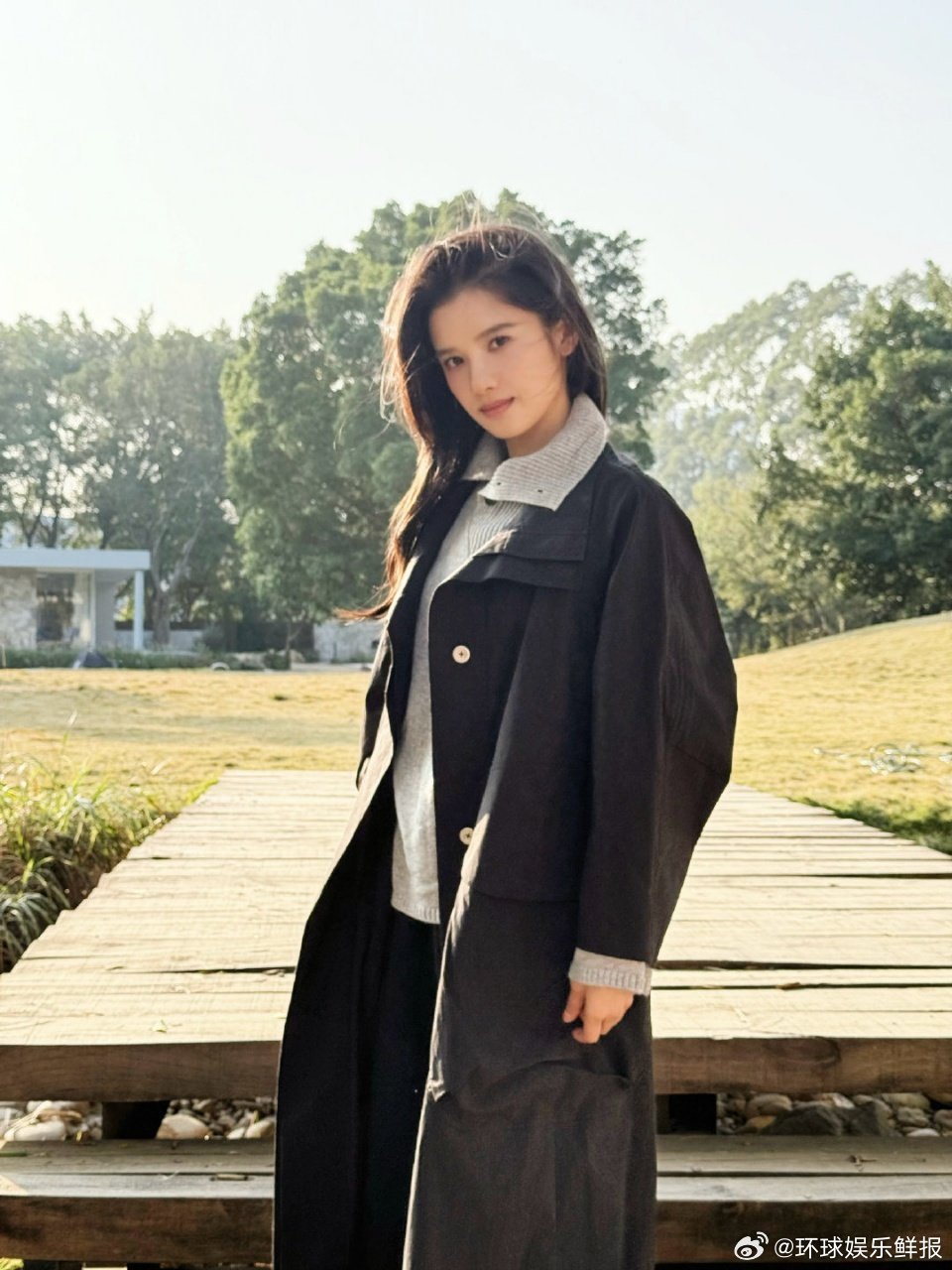 刘亦菲这条裤子挺养生,毕竟降温了肚脐眼必须护住啊
