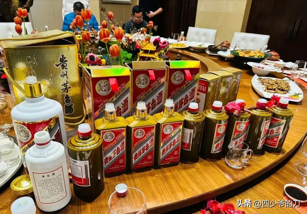 茅子虽然降价了,可是也不能这么喝啊! 这一桌茅子得值多少钱?这顿酒喝下来估计很多普通人一年的工资都不够。这哪里是在喝酒,这简直就是炫富嘛!所以这有钱是真好啊!豪车美女就不说了,起码可以实现茅台自由啊! 个人认为这茅台还是得降价,让它成为普通老百姓都能喝得起的口粮酒,要不然很多喝了一辈子酒的老酒鬼连一次茅台都没喝过,岂不是很遗憾。