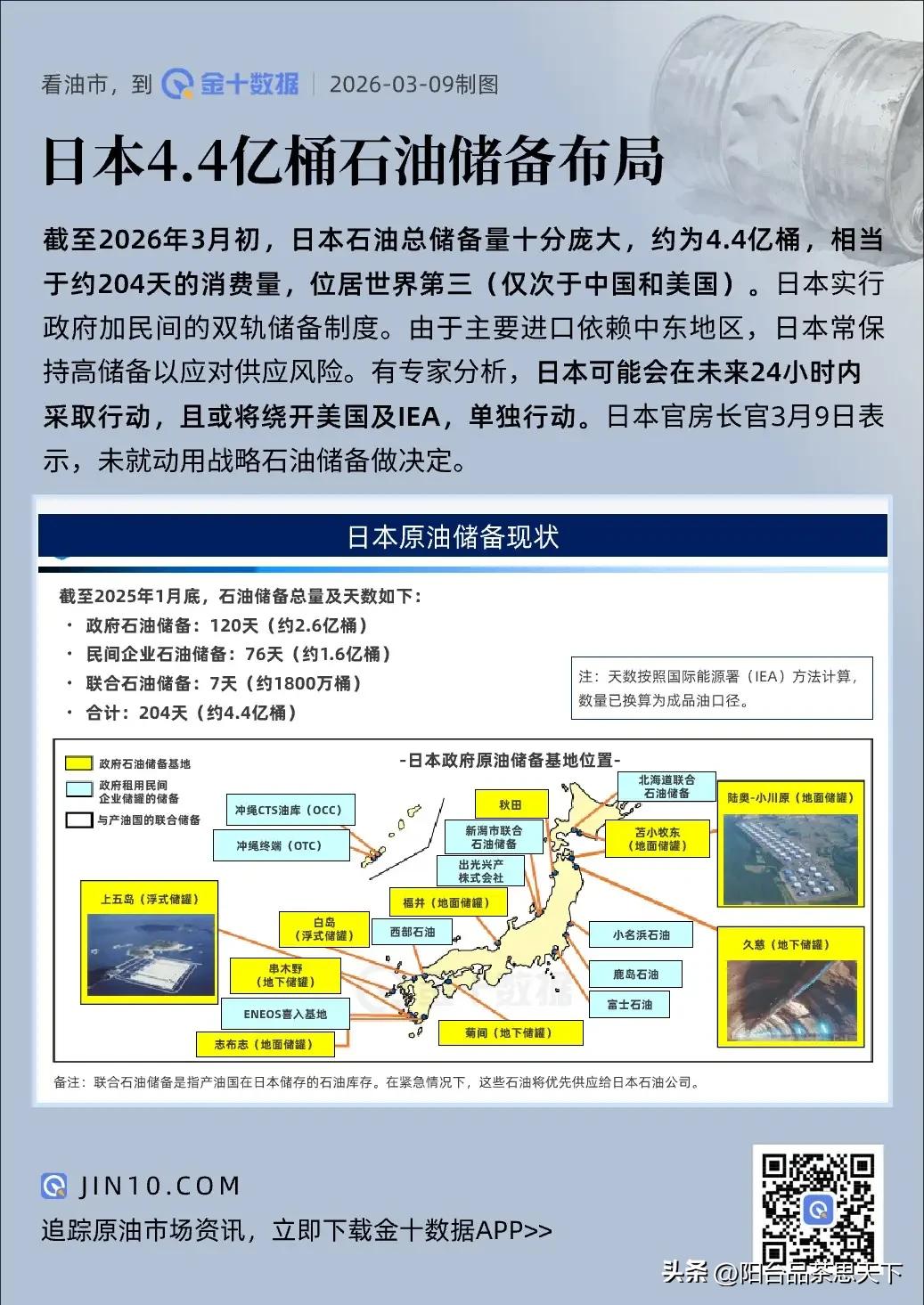 日本动用战略石油储备 其实很多网友还不知道,日本政府有着储备战略,石油应急的危机意识,其实日本民间也喜欢储备成品油,这一点和我们的国情民情有比较大的差异! 其实日本完全可以从美国购买石油,也不知道为什么,它的90%进口都来自于中东海湾国家!