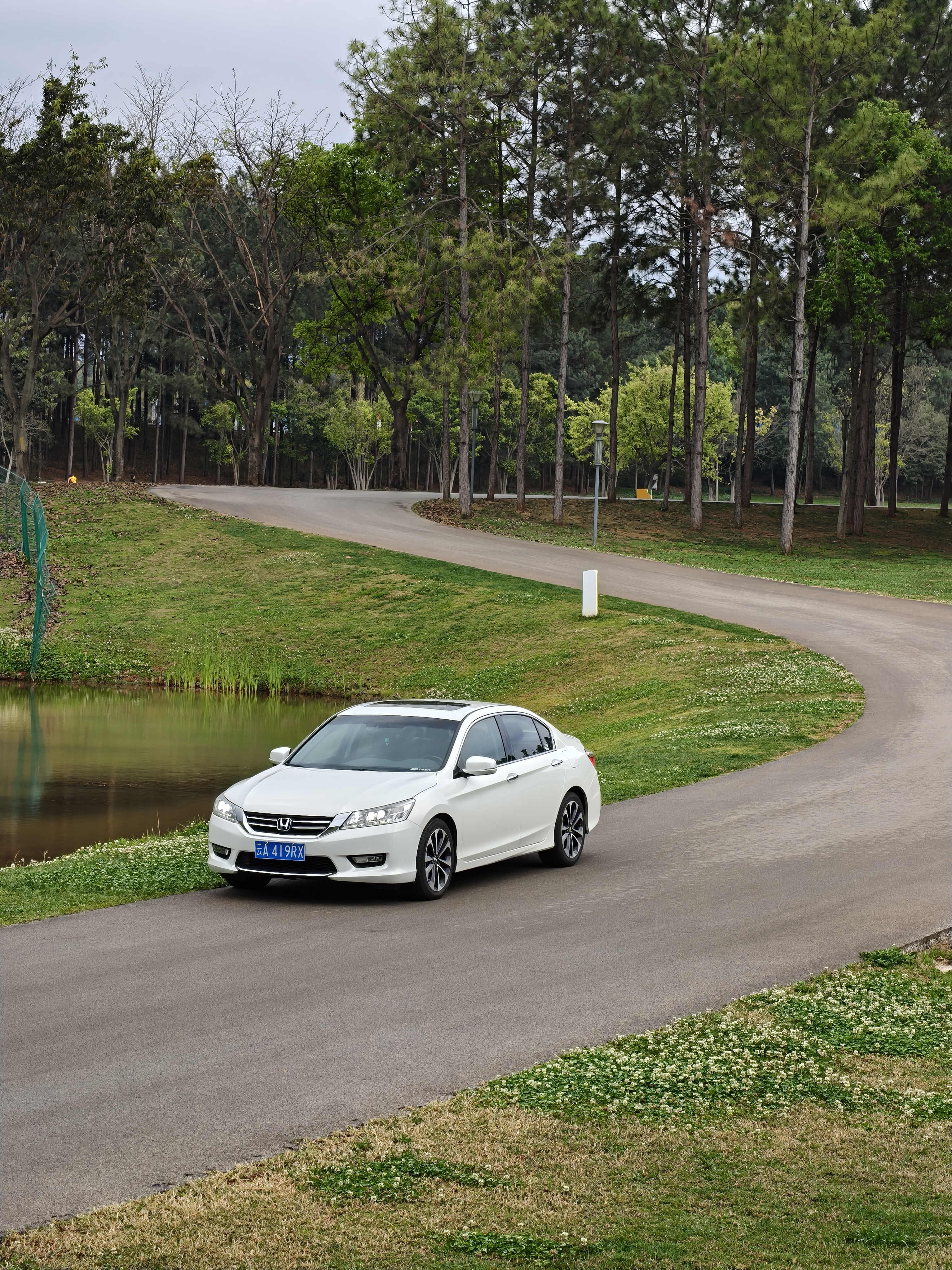 一车白色的新本田飞度,据说卖的很好,老款降价也挺多但无人问津,这一限量,抢着买!