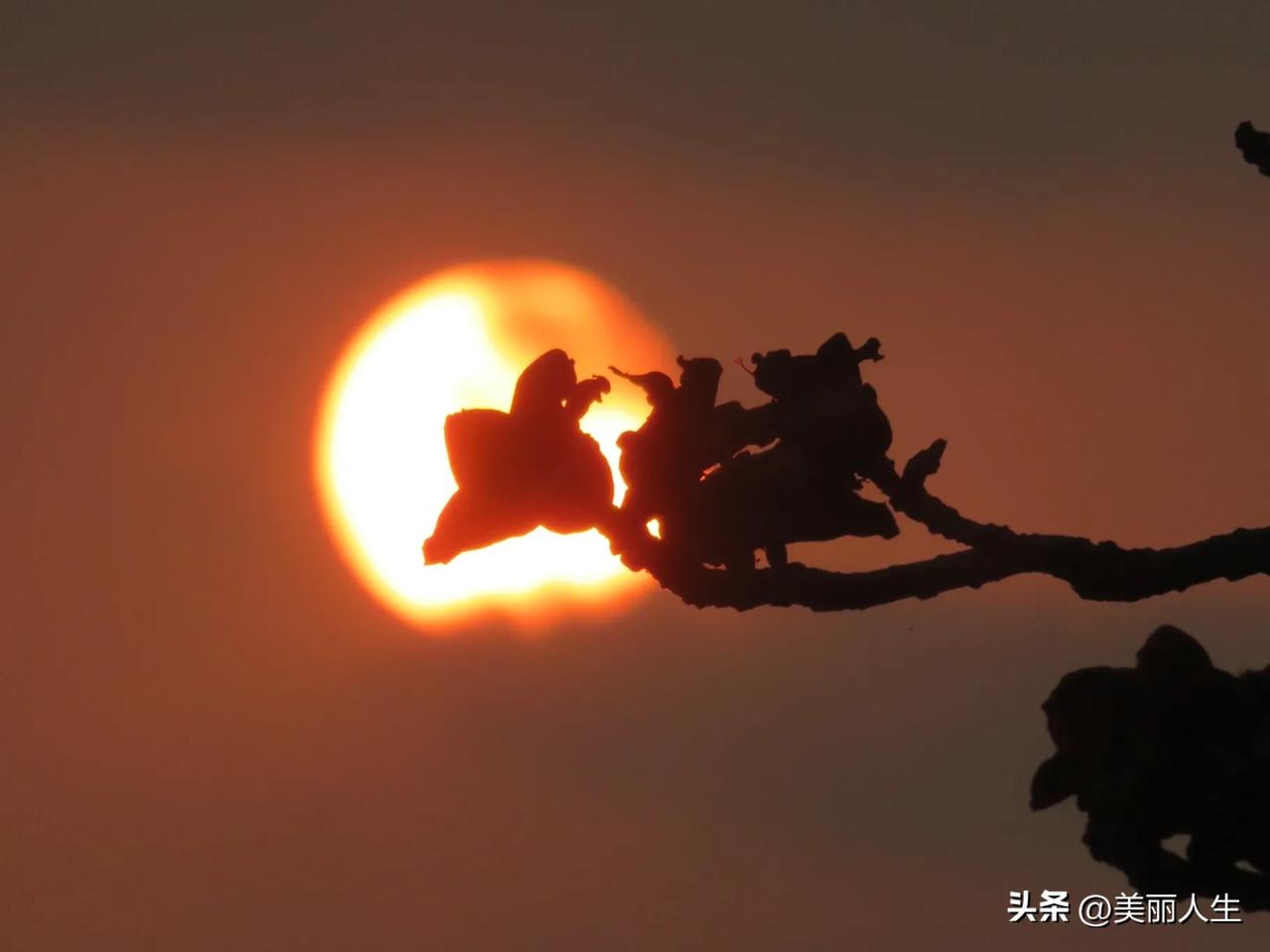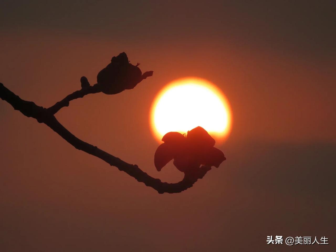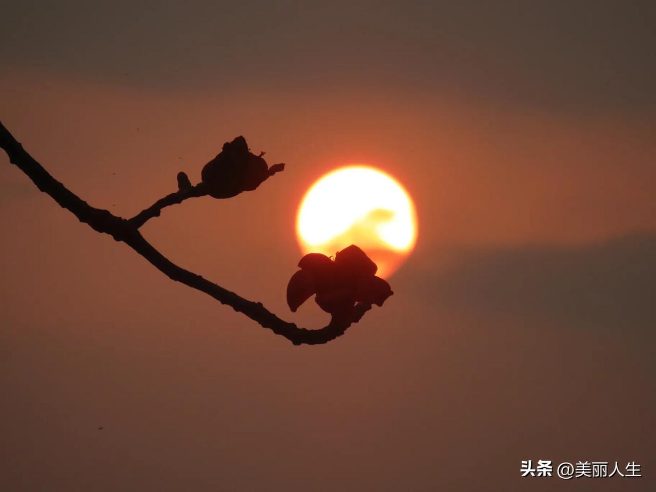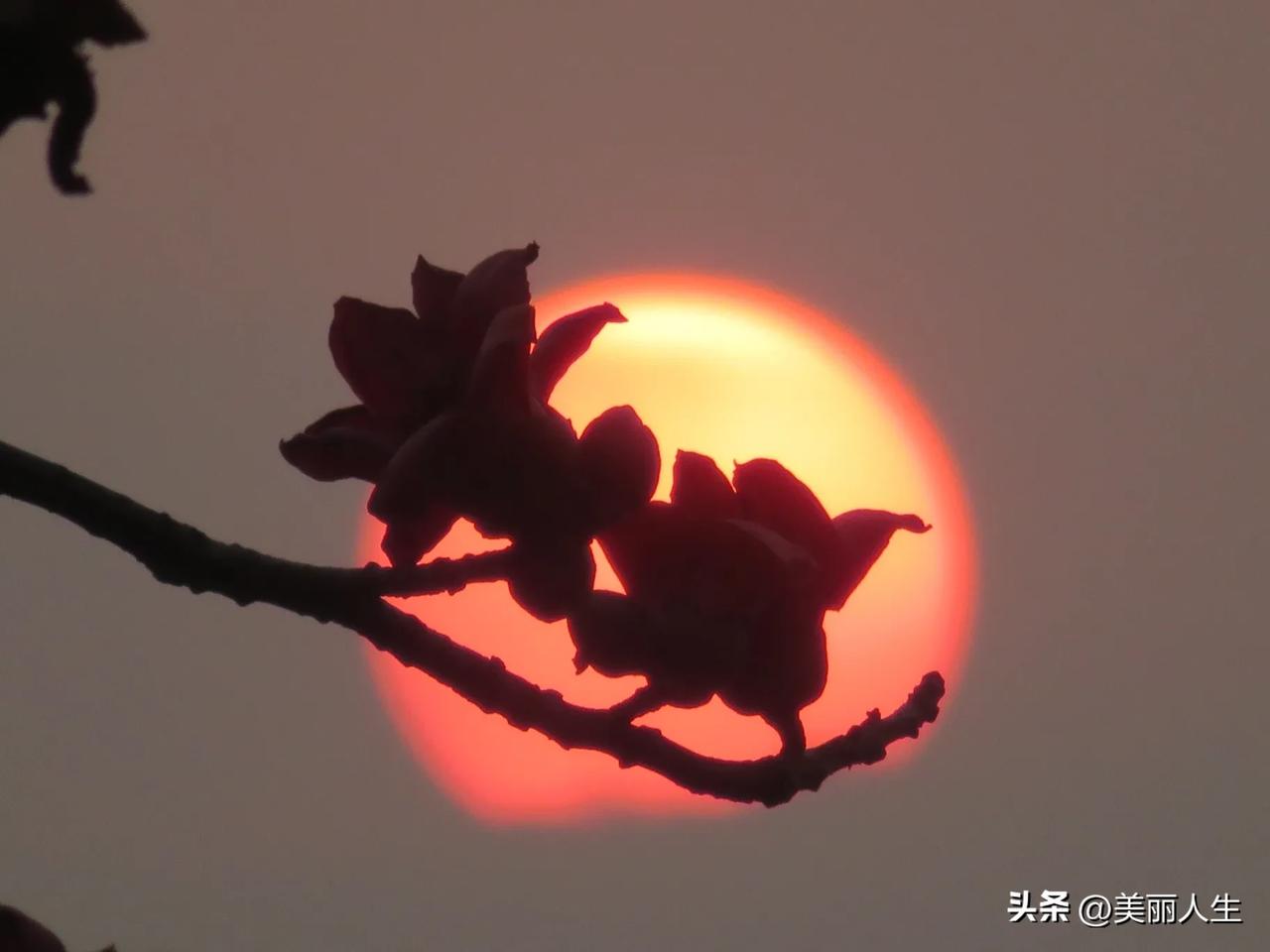 今日流花湖公园木棉花与日落同框