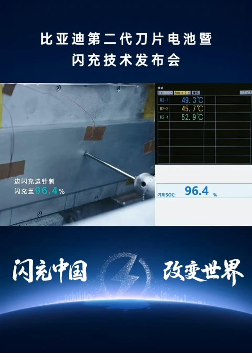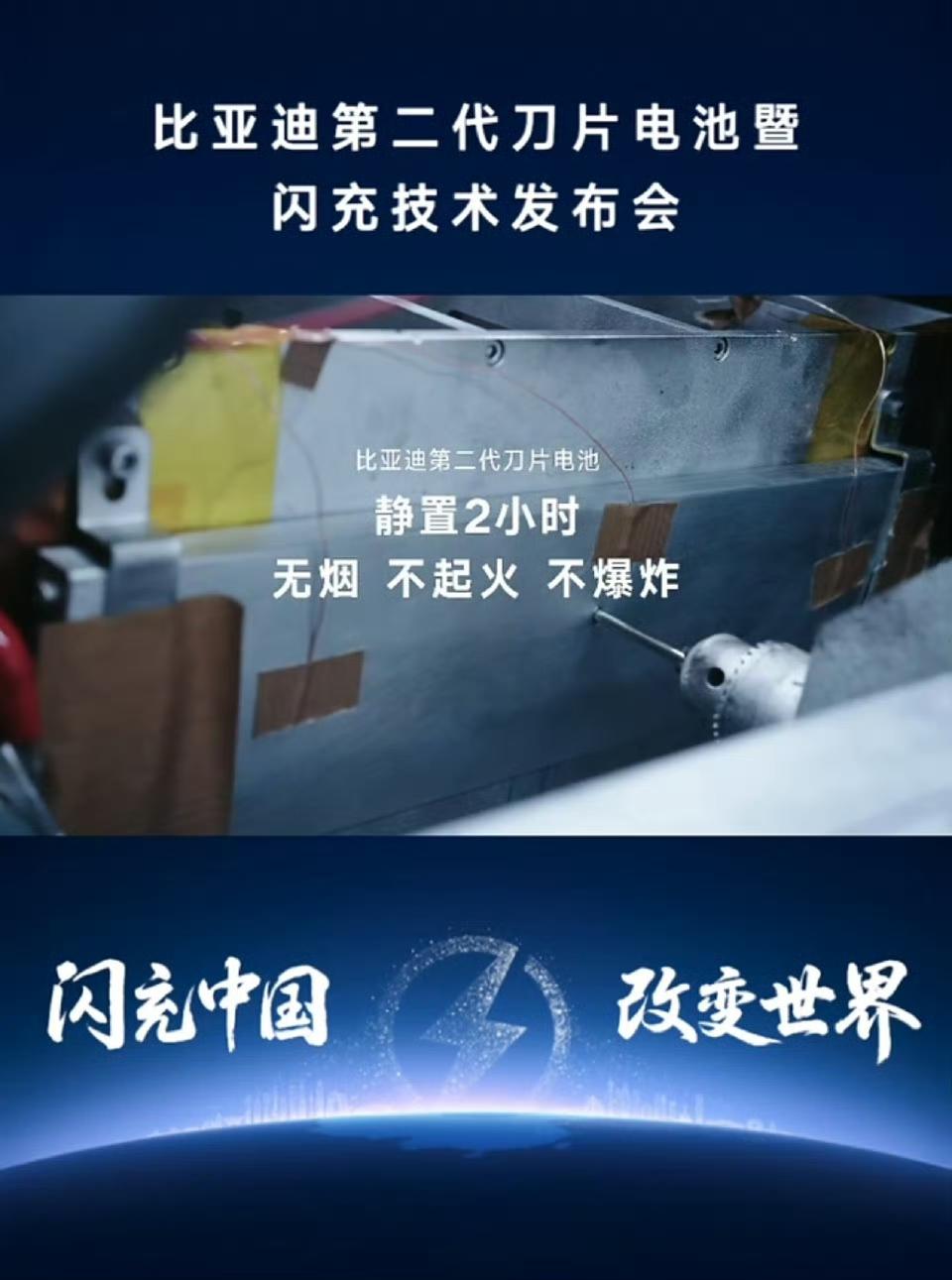 相对于容量更大续航更长,比亚迪第二代刀片电池我最在意的还是耐得住严寒,实验室零下30℃冻24小时都不影响充电速度,而且是旗下各平台车型都可以做到,真实不整虚的,且11分钟就能吃饱。 另外,速度更快的基础上,电池寿命反而更好了,比亚迪给出的保障标准也更高。 同时,二代刀片电池的安全性也远远远超国标,发布会上各种暴力测试足以说明一切。 感觉很快纯电车1000公里续航将成为标配。 比亚迪,硬核闪充技术树立行业新标杆。