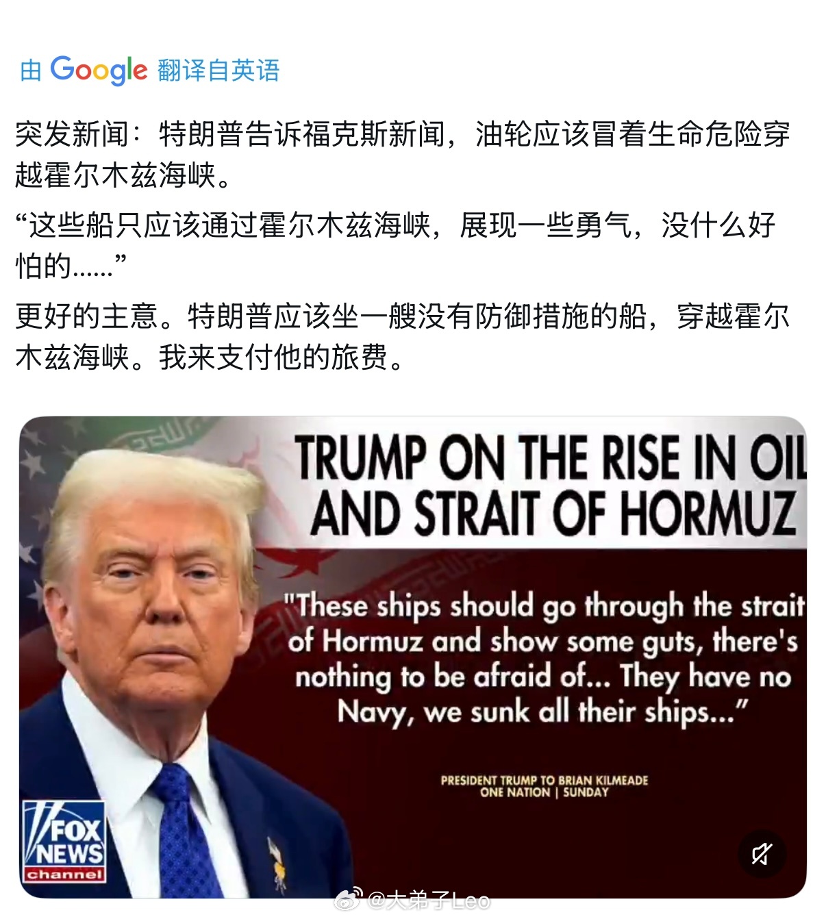 特朗普通过福克斯新闻向那些油轮发话