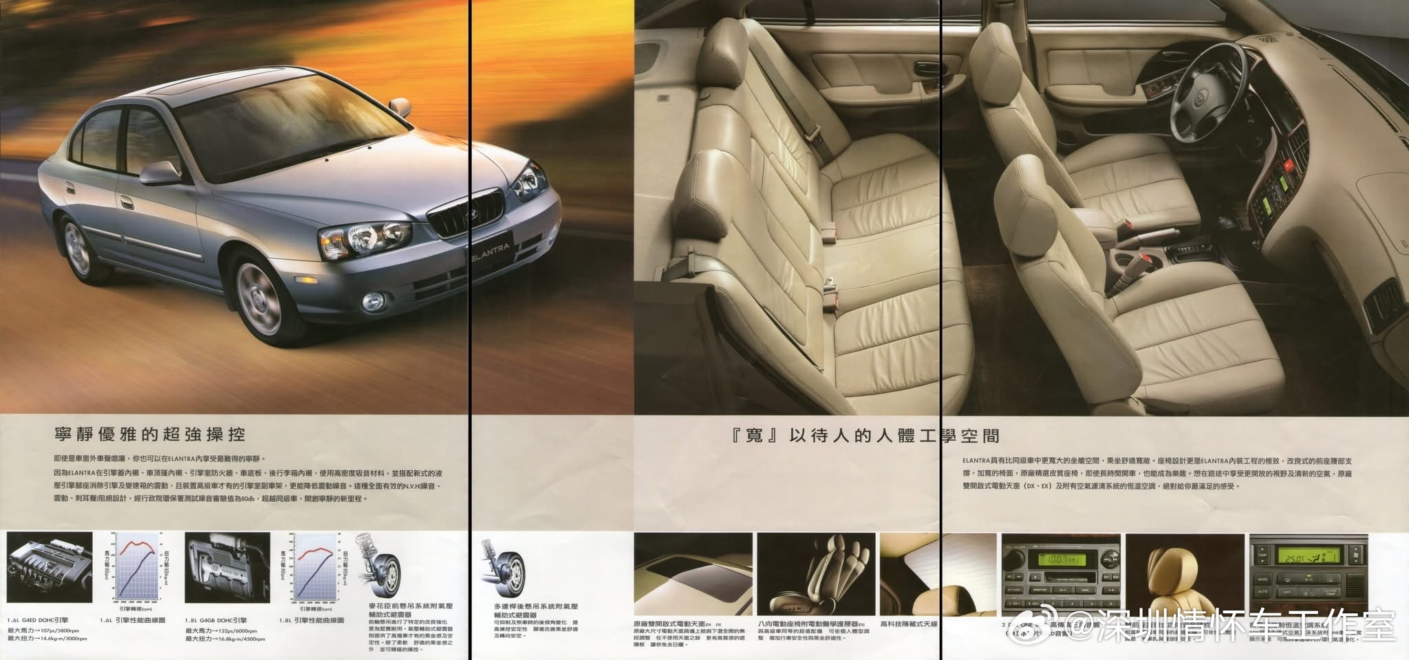 2003年 第三代国产伊兰特(XD)• 时间:2003年12月,北京现代成立仅1年,国产伊兰特正式上市(海外第三代)• 定位:A级家用车,高配低价,主打空间、耐用、低养护成本• 动力:1.6L/1.8L+5MT/4AT,轴距2610mm,同级空间领先• 价格:1.8L手动15.6万、自动16.68万,后加推1.6L拉低门槛• 销量:2004年破10万,月销8000+,6年保有量超70万,成“国民家轿”• 标签:出租车之王(北京奥运前后大规模采购),奠定韩系车在中国的基础
