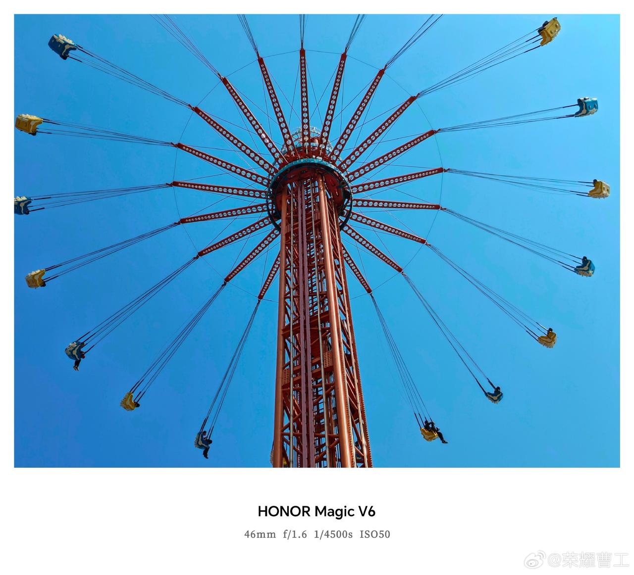 刚刚看到荣耀研发工程师曹工,展示了荣耀Magic V6的影像能力,佛山顺德欢乐海岸PLUS欢乐时光主题公园的高空飞椅,据说有58米高,运行时离心速度达到了53km/h,这款机型随手就能够,将快速转动的娱乐器材,清晰展示在照片中,而且成像色彩也很真实。小伙伴们敢不敢乘坐这个娱乐设备呢? 畅聊数码新品 数码资讯