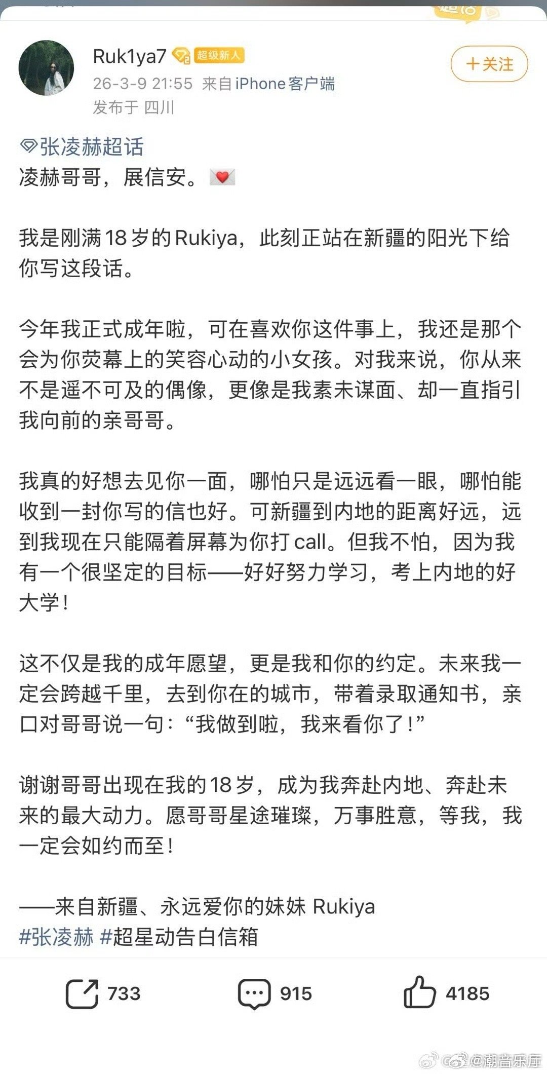 张凌赫为高考粉丝加油张凌赫回复粉丝信件 张凌赫回复粉丝信件,为高考粉丝加油,