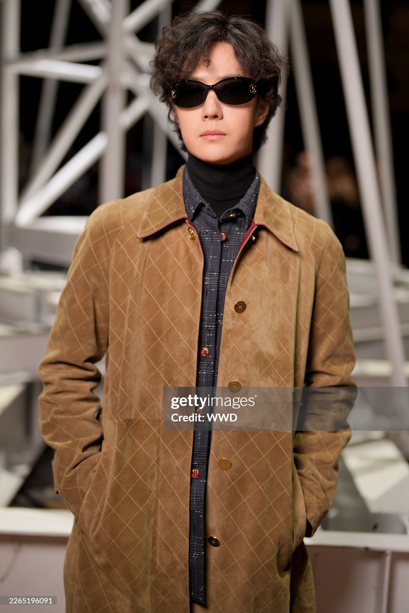 王一博米色麂皮大衣 巴黎时装周 时装周