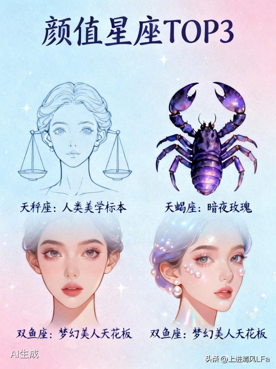 要说十二星座哪个颜值最高,天秤座必须拥有姓名。他们骨相优越、气质优雅,五官比例近乎完美,简直是“人类美学标本”,美得相当出圈。 天蝎座也不遑多让,作为神秘的浓颜系代表,气场强大,眼神深邃,五官立体有冲击力,如同“暗夜玫瑰”,越品越有味道。 双鱼座浑身散发着梦幻气息,眼神自带柔光滤镜,皮肤有珍珠般的光泽,是氛围感美人天花板,有跨越性别的梦幻美感。这几个星座在颜值方面各有千秋,很难说谁是绝对的第一,只能说都是颜值界的佼佼者。