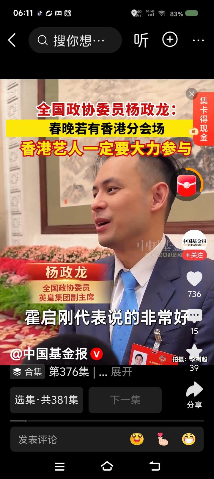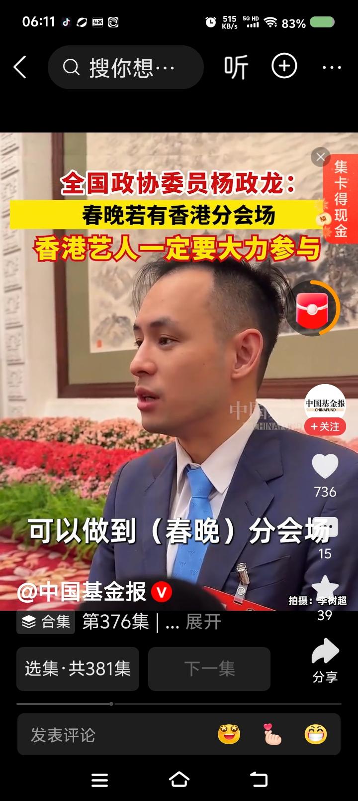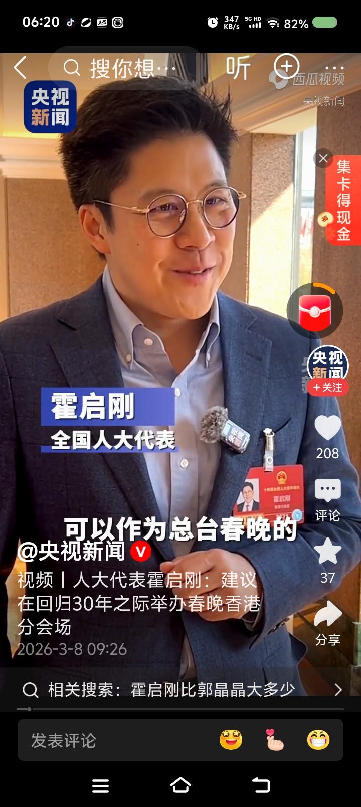 你支持香港成为春晚分会场吗?—— 据报道,“两会”期间,有代表提出:明年是香港回归30周年,希望香港成为春晚分会场。 点评: 国家支持香港发展,但香港也要自觉成为中华大家庭寻常一分子,不可事事“求宠”。 如何办春晚上升不到国家立法层面。建议有关部门不将此提议列为提案。
